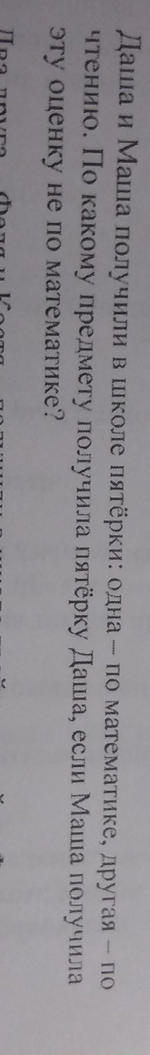 Маша получила эту оценку НЕ по математике, значит по литературе, значит Даша получила по математике)