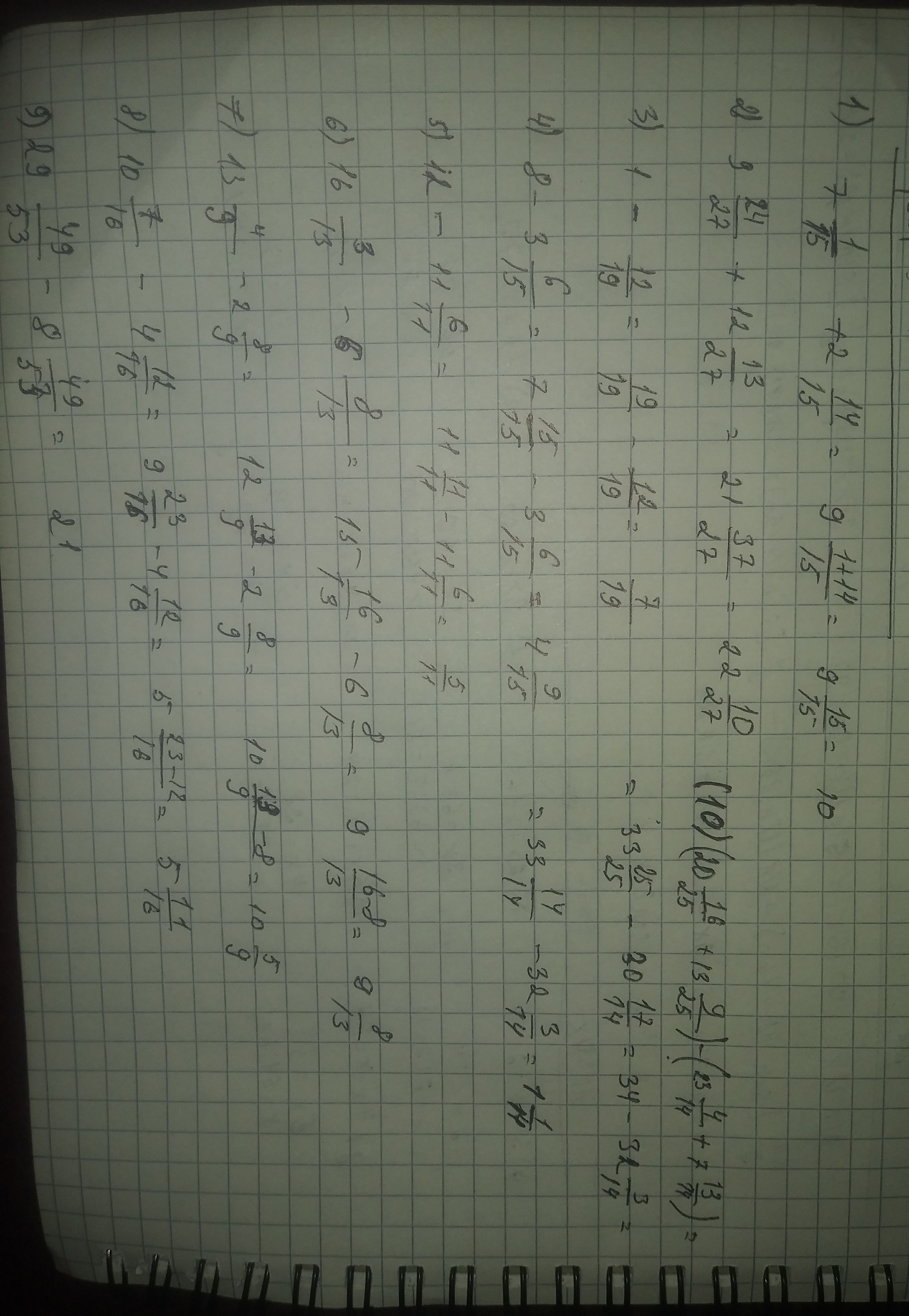 10) (20целых16/25 + 13целых9/25) - (23целых4/14 + 7целых13/14