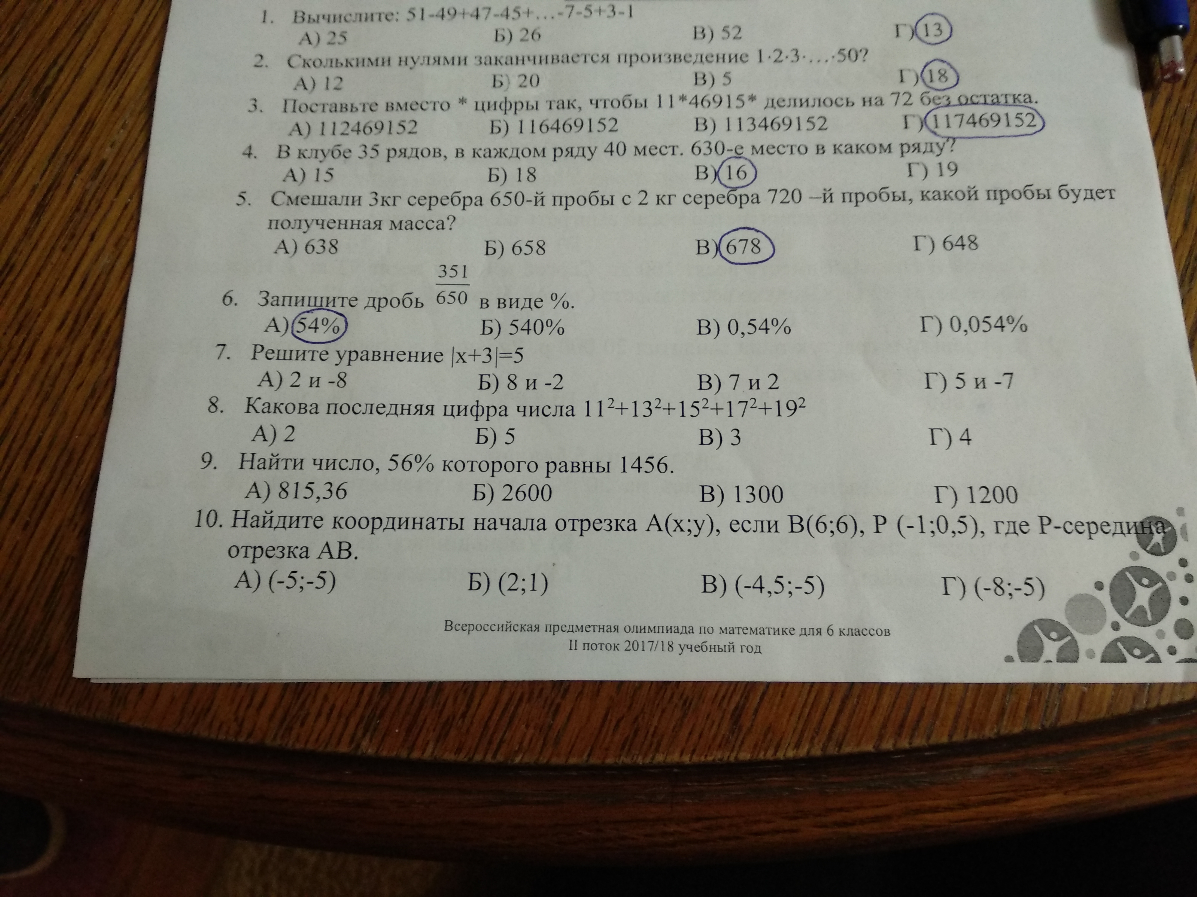 1)Б; 2)А; 3)Г; 4)Б; 5)В; 6)А; 7)А; 8)Б; 9)А; 10)Г.
