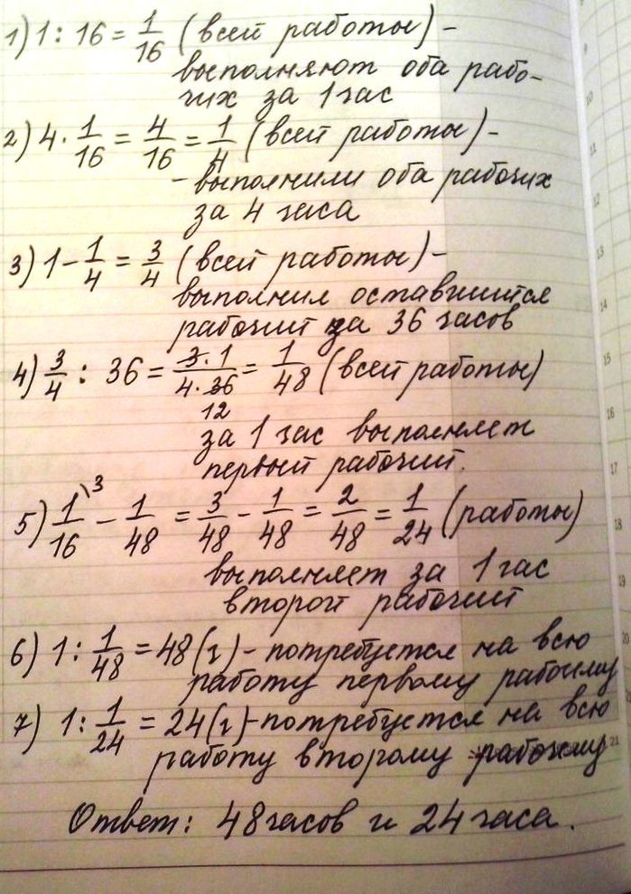 Двое рабочих ,работая совместно, могут выполнить работу за 16 дней . После 4 -х дневной совместной работы один из них мог закончить работу за 36 дней . За сколько дней , работая отдельно , каждый из них мог бы выполнить всю работу ?
