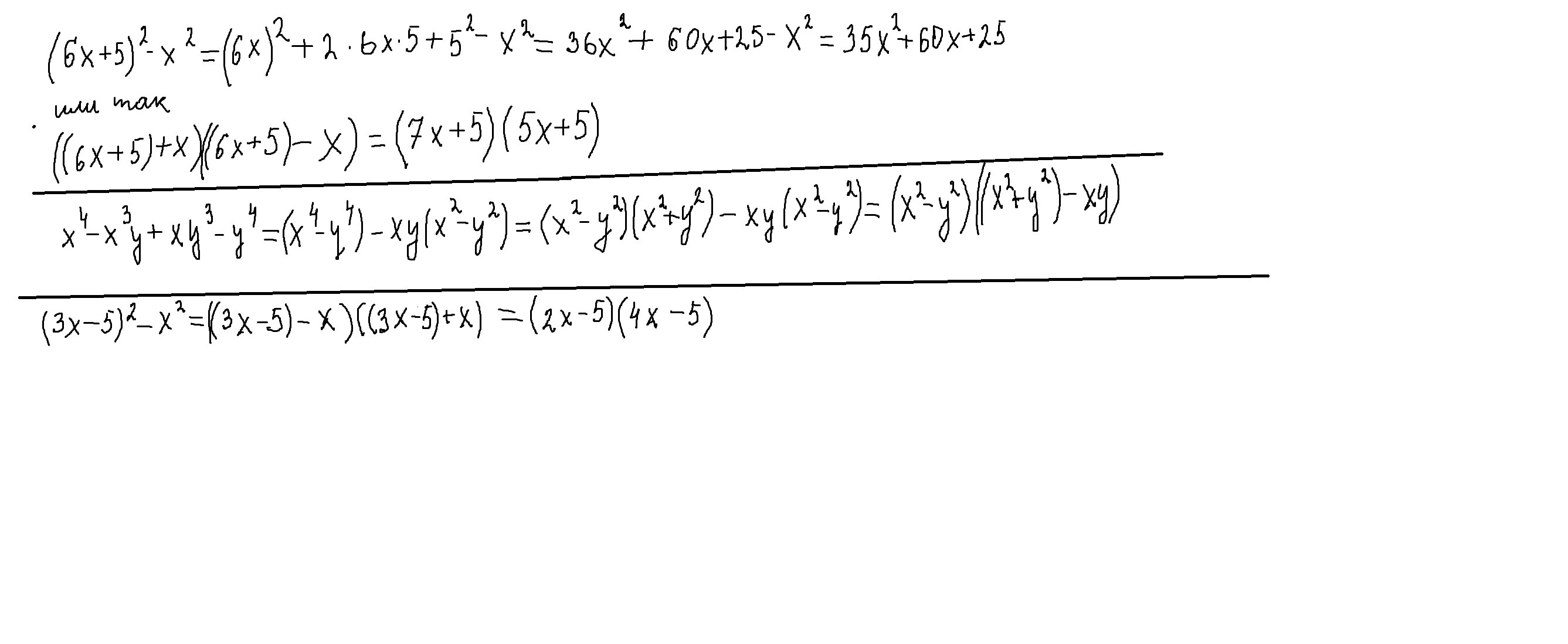 а) (6х+5)²-х². б) х⁴-х³у+ху³-у⁴