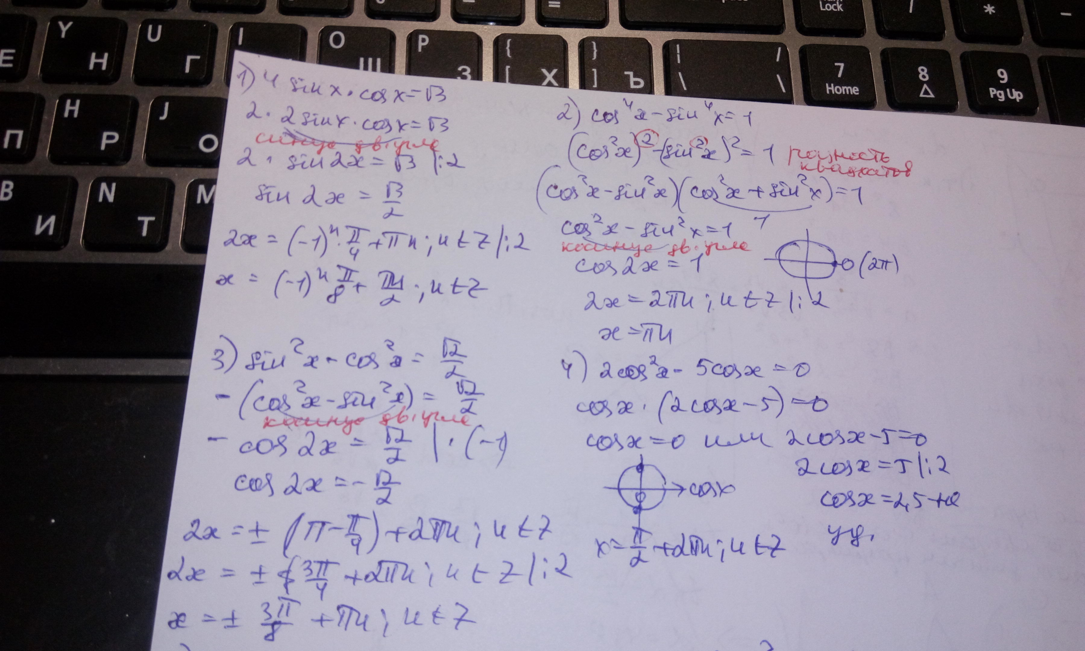 1)4 sinx*cosx=√3