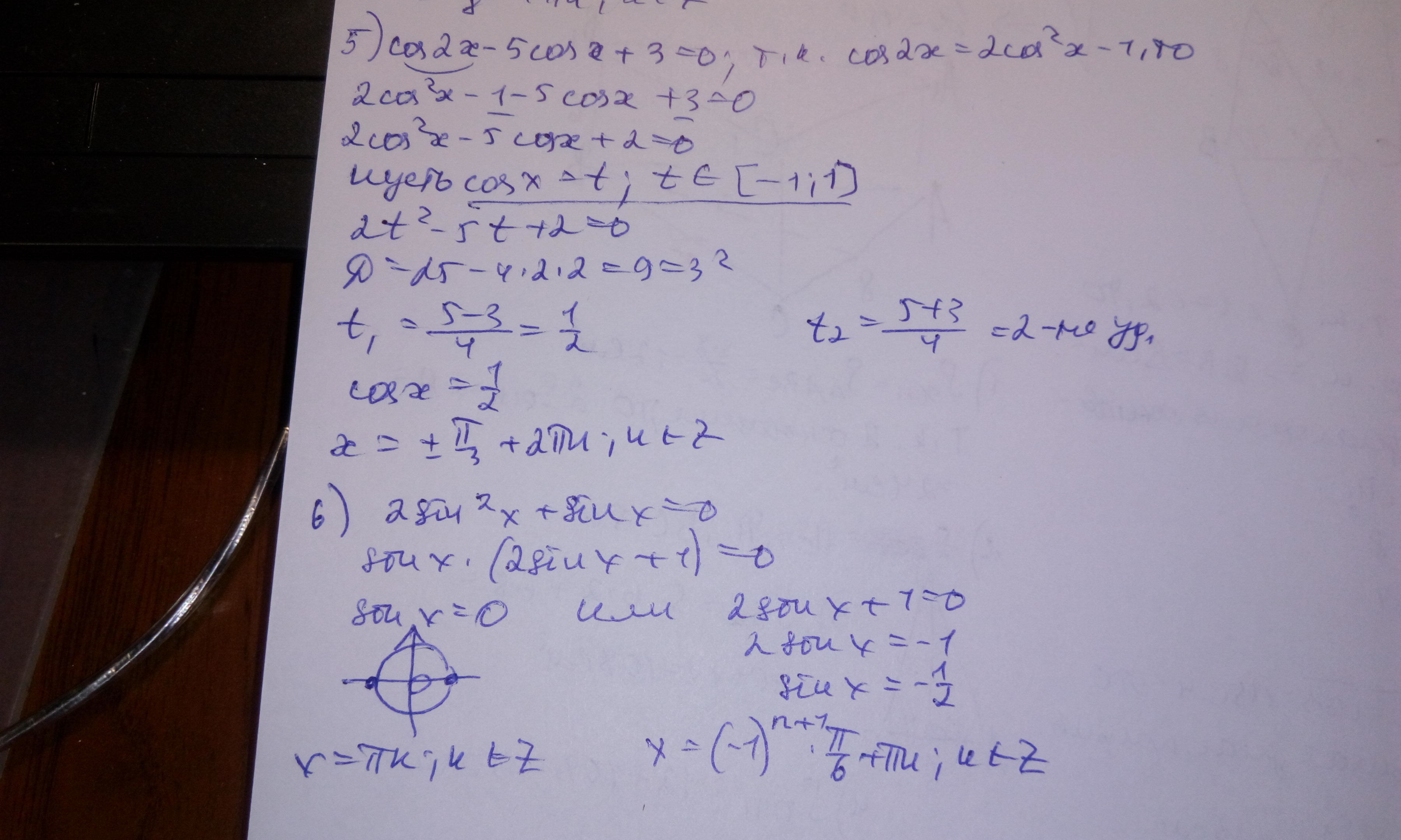 5)cos2x-5cosx+3=0