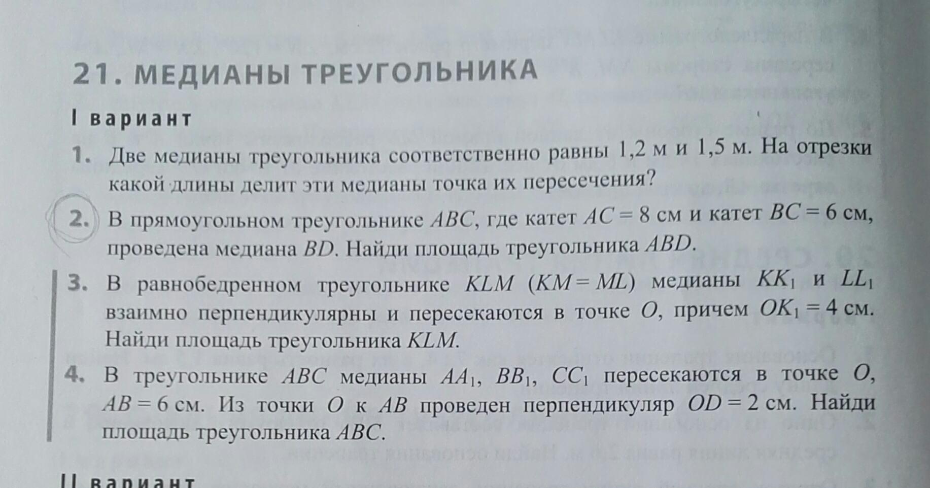Медиана ВD делит сторону АС на две равные части(по 4см)
