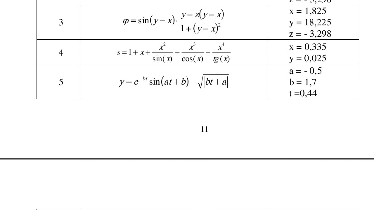 program xyzf;var x,y,z,f:real;beginx:=1.825;y:=18.225;z:=-3.298;f:= sin(y-x)*(y-z*(y-x))/(1+sqr(y-x)); writeln(f);end.