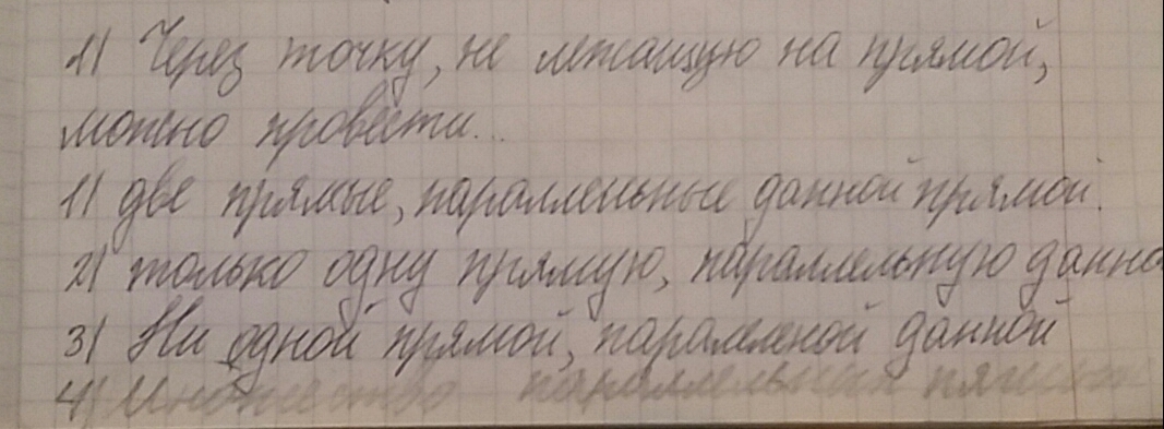 Через точку, не лежащую на прямой, можно провести только одну прямую, параллельную данной.
