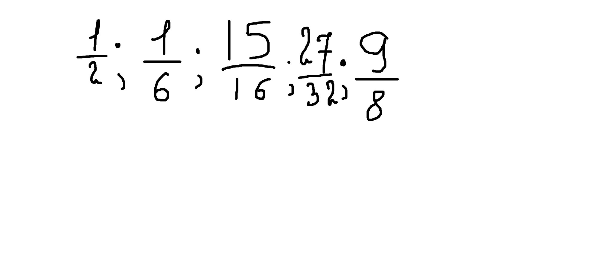 9/8, 15/16,27/32, 1/2 , 1/6