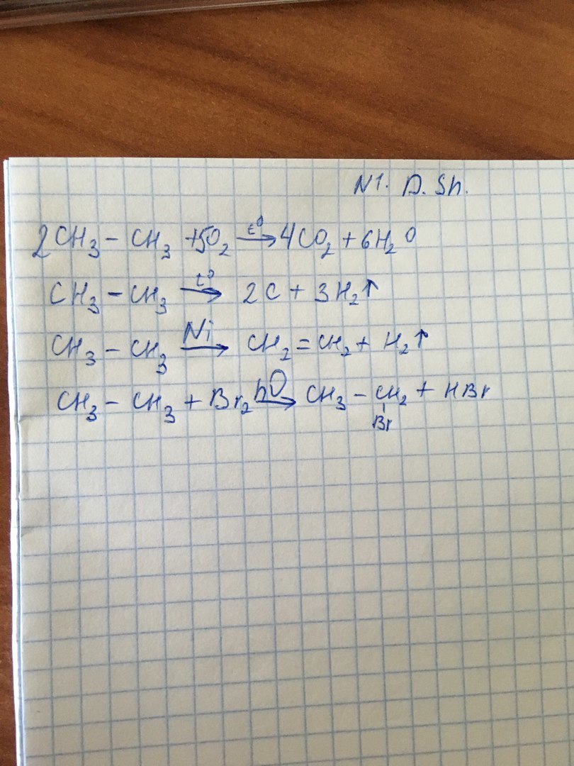 Написать уравнения реакций горения, дегидрирования термического разложения этапа, взаимодействие этана с 1 молем брома