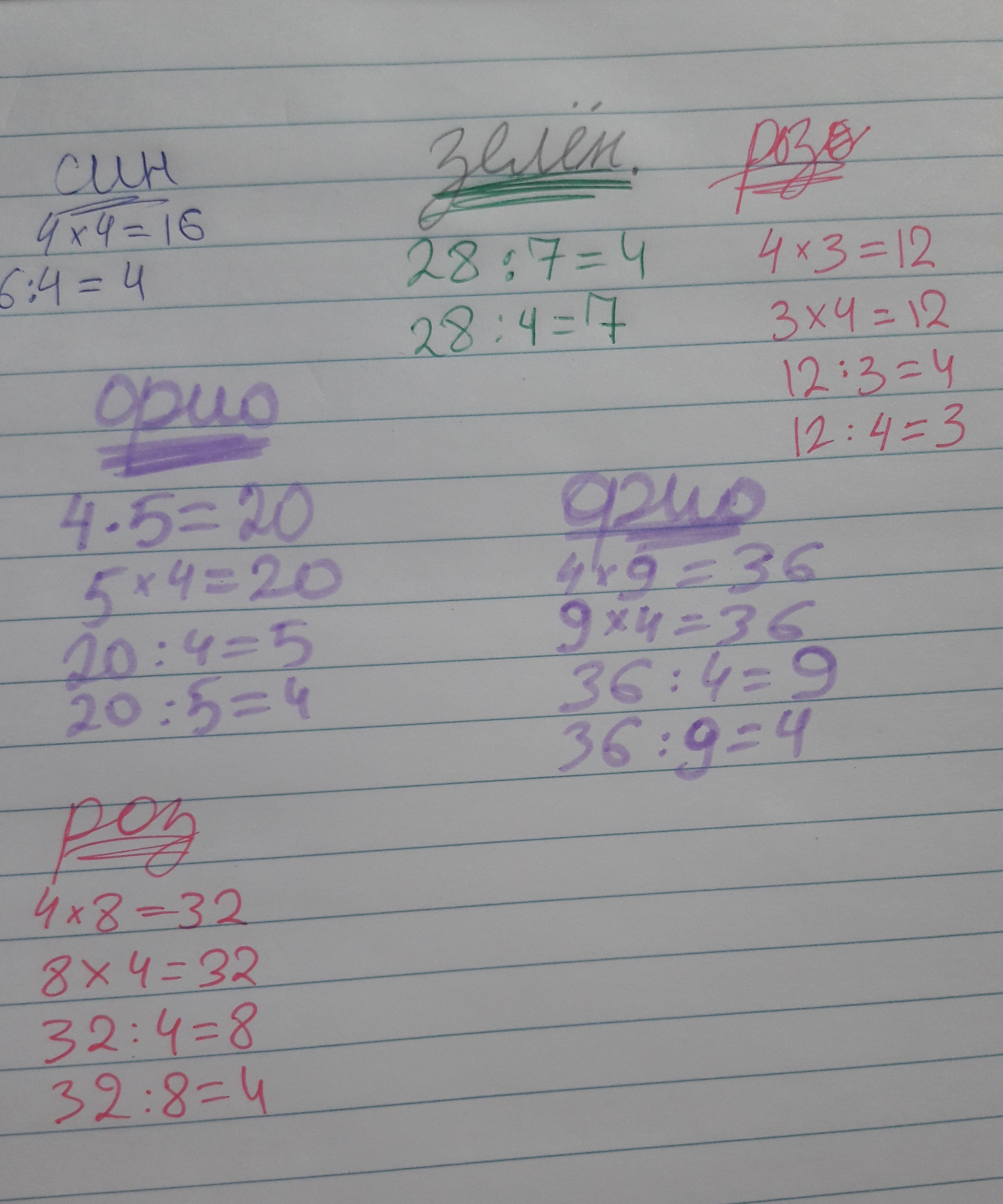 (зеленое) - 28:7=4 и