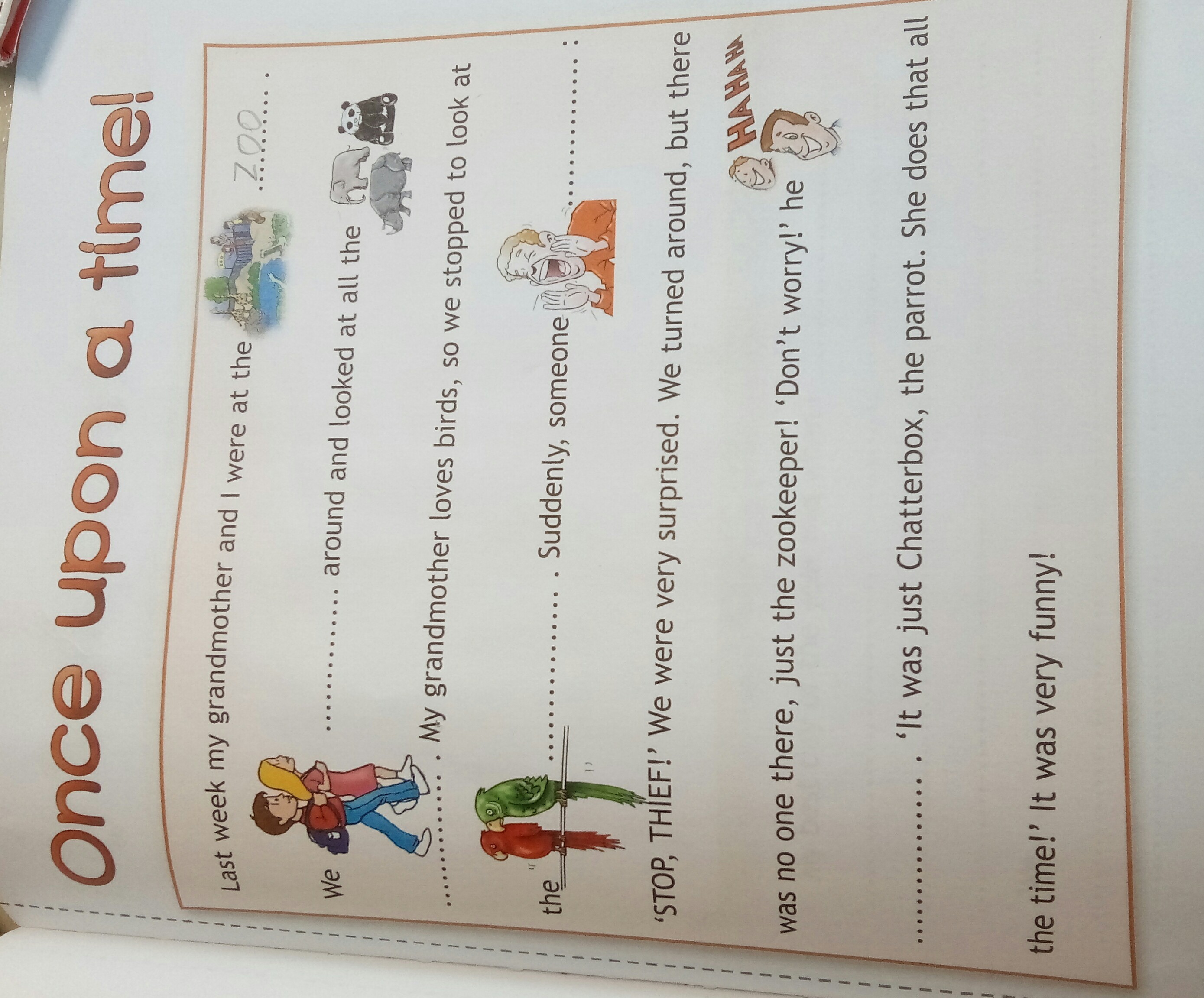 1 zoo 2 walked 3 animals 4 parrots 5 shouted 6 laughed