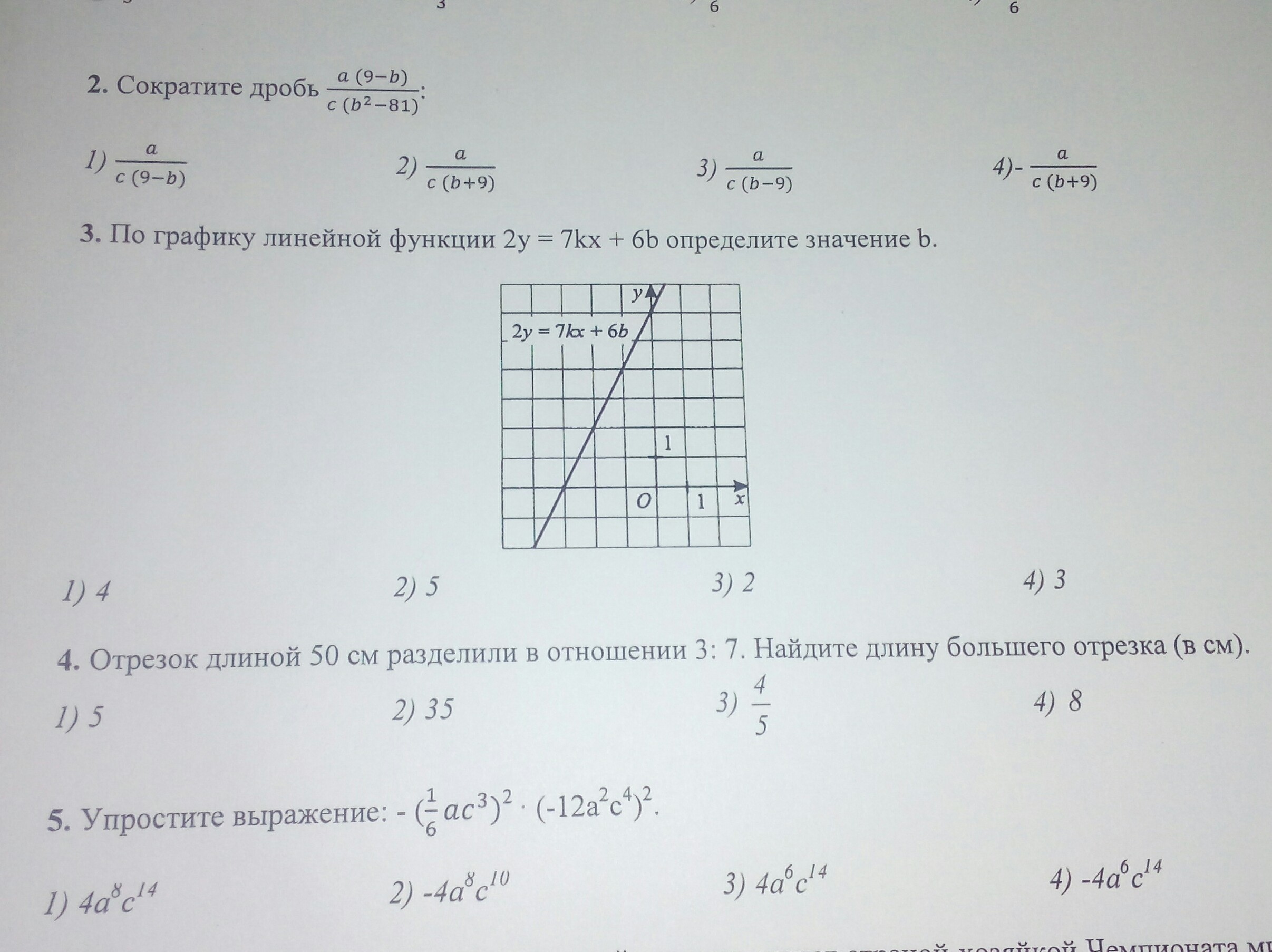В знаменателе квадрат разности b и 9 раскладываем на две скобки . В числителе выносим минус за скобку, сокращаем скобку в числителе на скобку в знаменателе. Получим ответ 4)