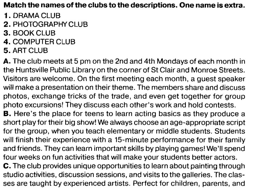 В-1. Это место для подростков для изучения основ актёрского мастерства и они ставят небольшие пьесы для большого шоу! Мы всегда выбраем сценарий под возраст группы, когда мы обучаем учеников младшей и старшей школы. Ученики усваивают опыт 15-ти минутной пьесой для их семей и друзей.Они могут узнать важные знания играя в игры! Мы проведём 4 недели с весёлыми занятиями, которые помогут нашим ученикам стать лучшими актёрами.