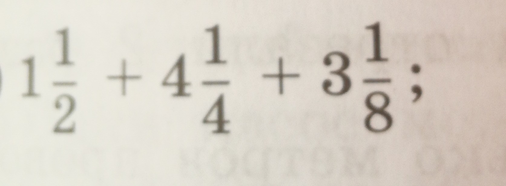 1 1/2+4 1/4+3 1/8 ( общий знаменатель 8) = 1 4/8+4 2/8+3 1/8= 8 7/8