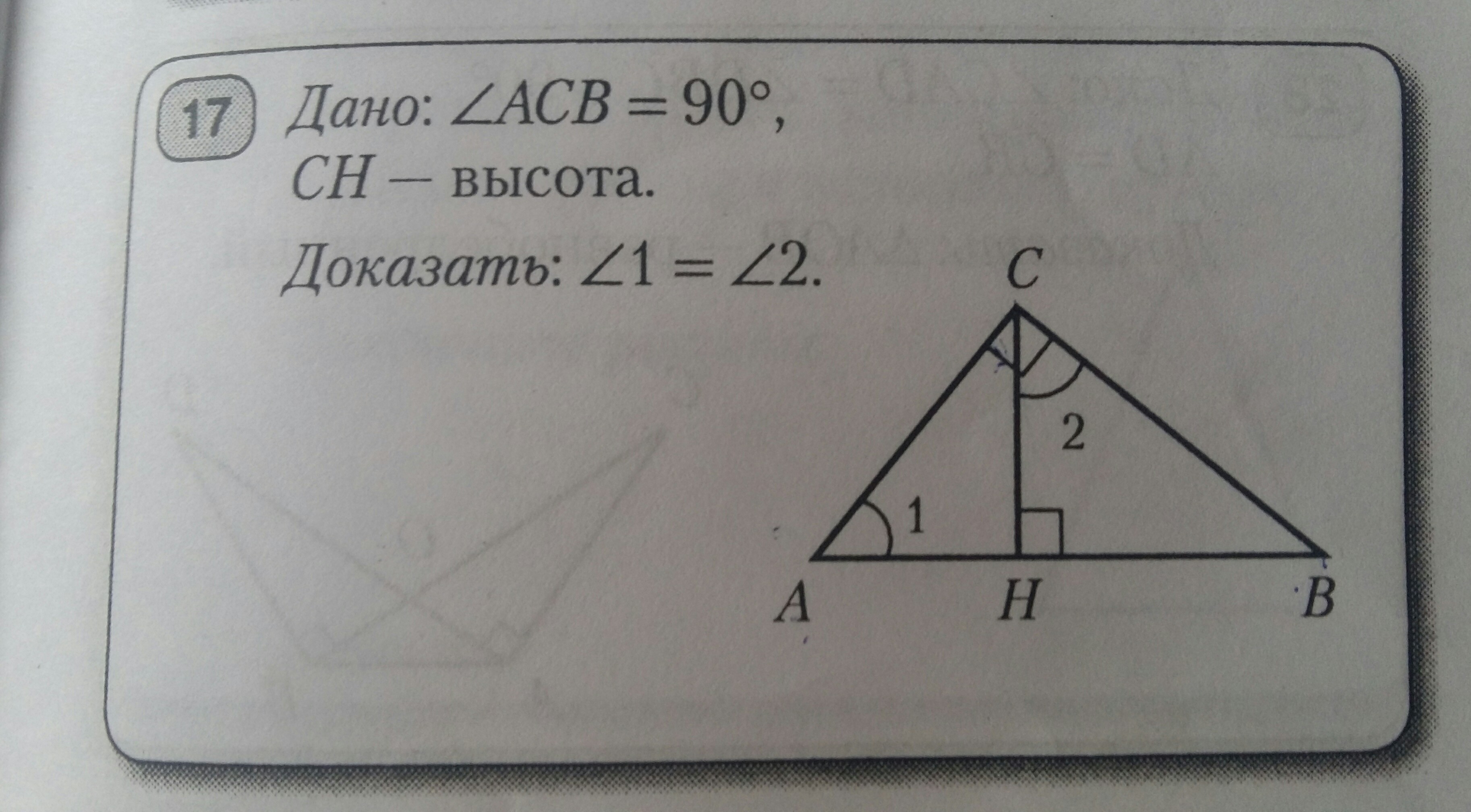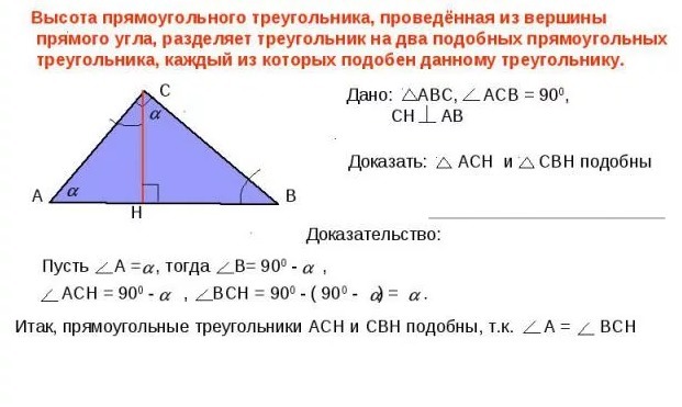 Так как по свойству высота, проведенная из вершины прямого угла делит треугольник АВС на два подобных треугольника, СН - общая сторона, углы АНС=СНВ, угол САН=НСВ
