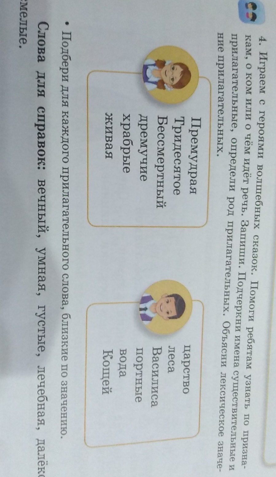 подбери для каждого прилагательного слова, близкие по значению, вечный, умная, густые, лечебная, далёкое, смелые