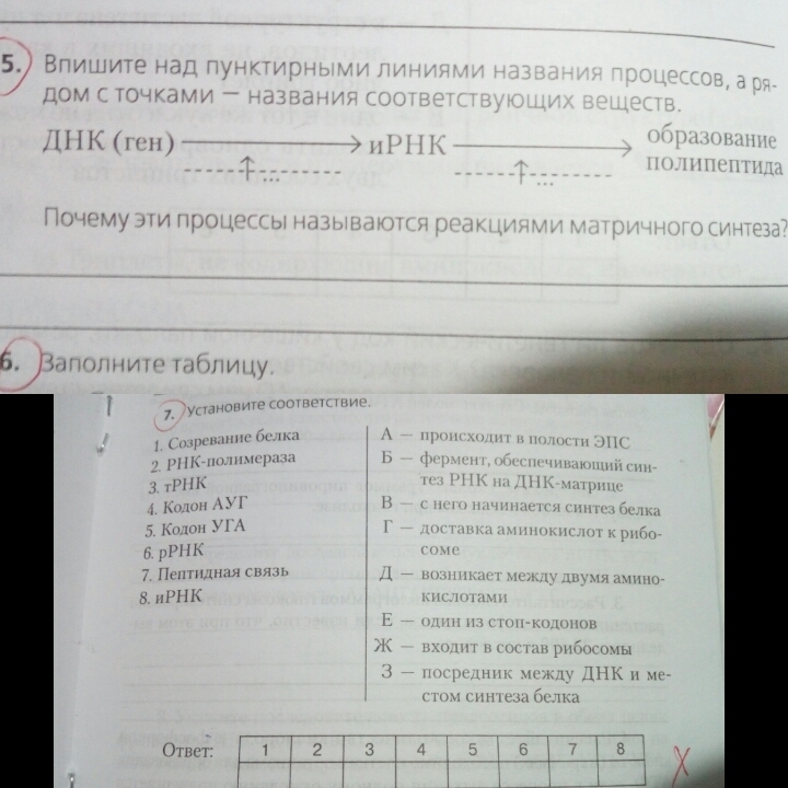 Реализация наследственной информации. Биология 10 класс. Помогите пожалуйста с 3,4,5 и 7 заданиями. Заранее спасибо)