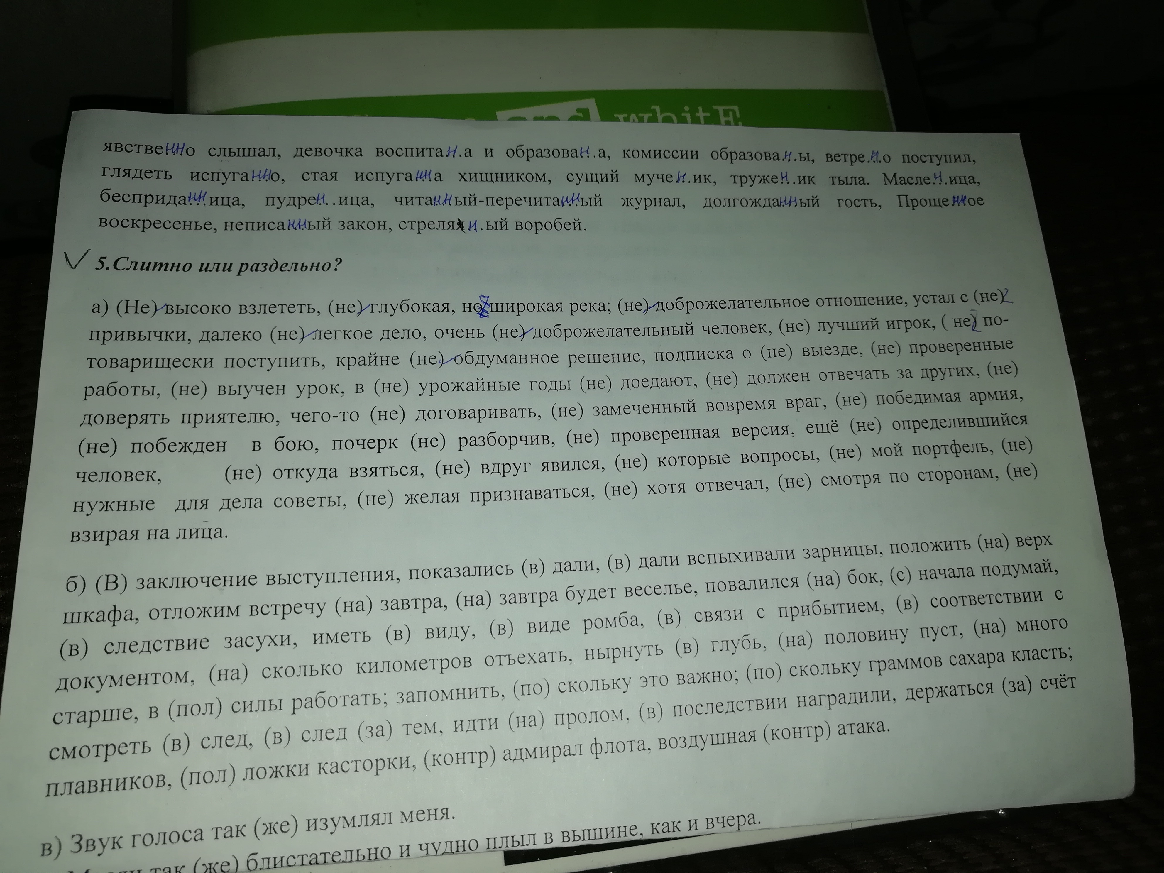 Б) В_заключение..., вдали..., ... на_верх... , ...на_завтра, на_завтра..., ... на-бок, сначала..., в_следствие ..., ...ввиду, в_виде..., в_связи ..., в_соответствии ..., на_сколько..., ... в_глубь, наполовину..., на_много..., в пол силы ..., поскольку..., по_скольку..., ...в_след, вслед за_тем, ...напролом, в_последствии ..., ... засчёт ..., пол_ложки..., контр_адмирал ..., ...контратака.*