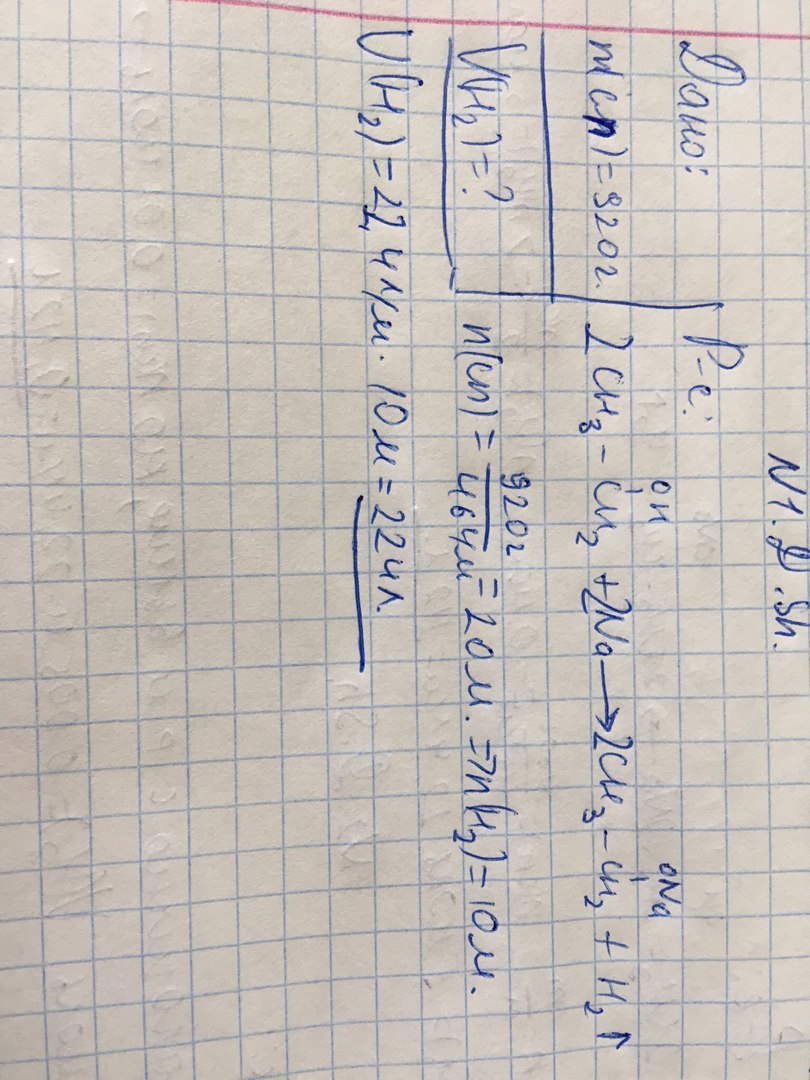 Вычислите объем водорода выделившегося при взаимодействии 920 г этилового спирта с металлическим натрием.
