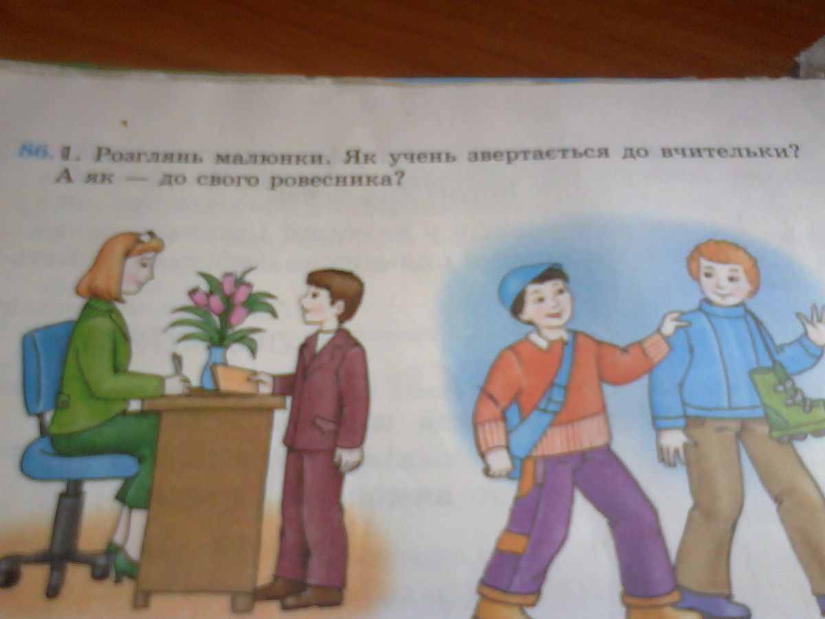 розглянь малюнки.як учень звертається до вчительки?а як до свого ровесника.Вправа 86,рідна мова 3 клас М.С Вашуленко,О.І.Мельничайко