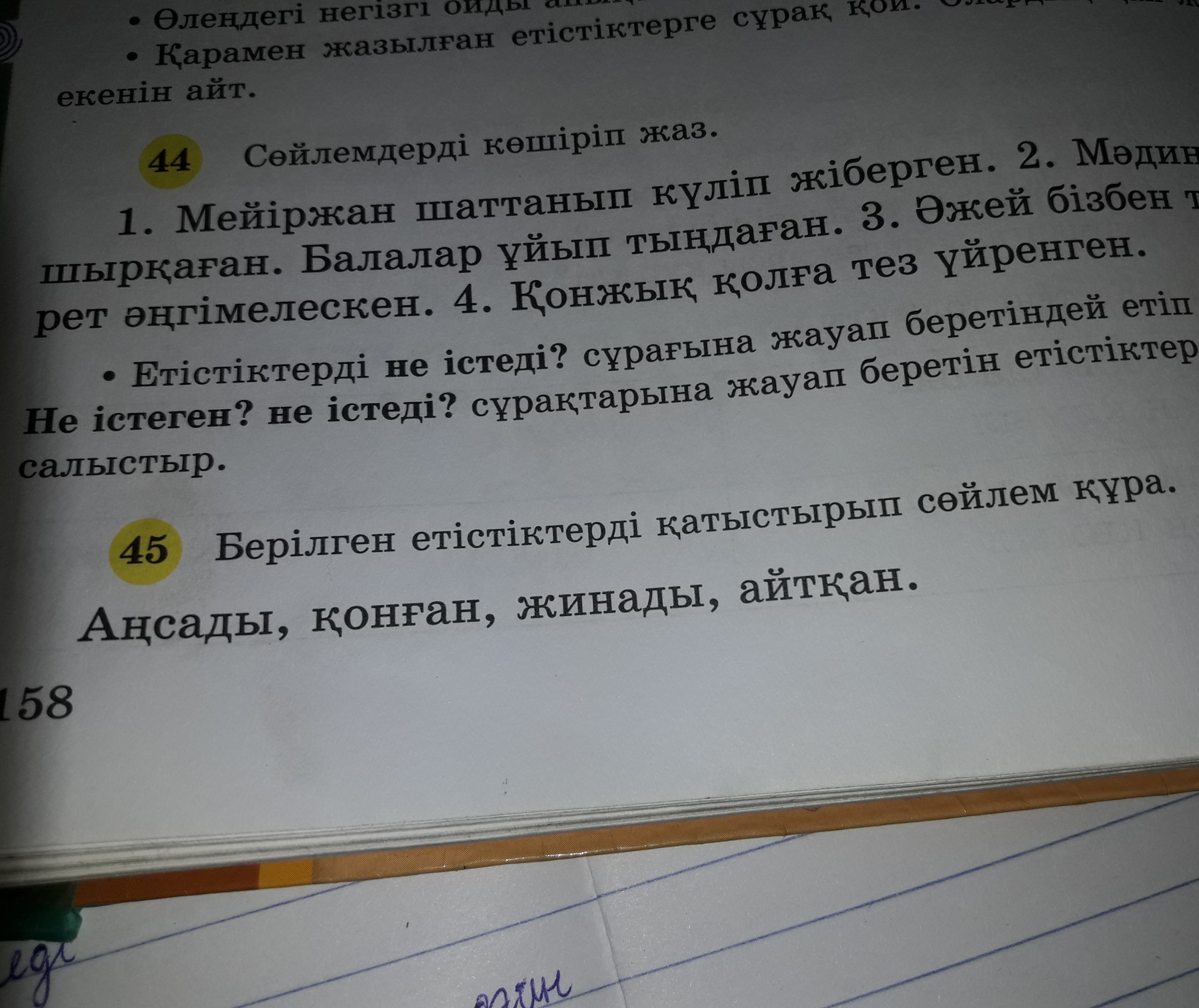 Асел жана велосипедті аңсады . Дәулет әжесінін үйіне қонған . Жанар алманы ағаштан жинады. Нұрай анасына дәлмеуіз сөз айтқан жоқ