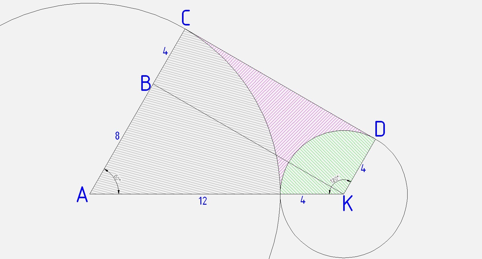 АСДК - трапеция, основания АС=12 см и ДК=4 см