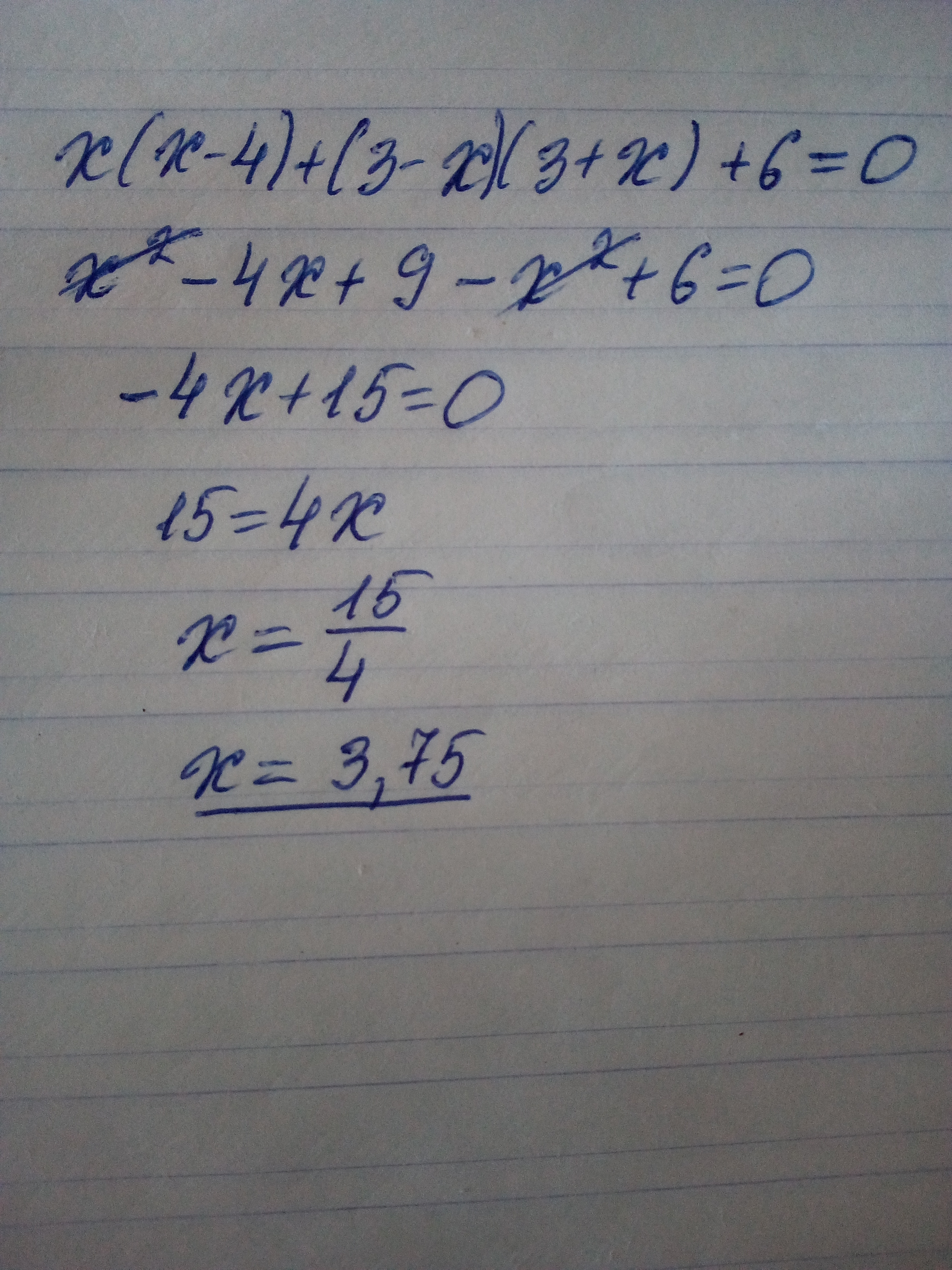 x2 - 4x + 9 - x2 = -6