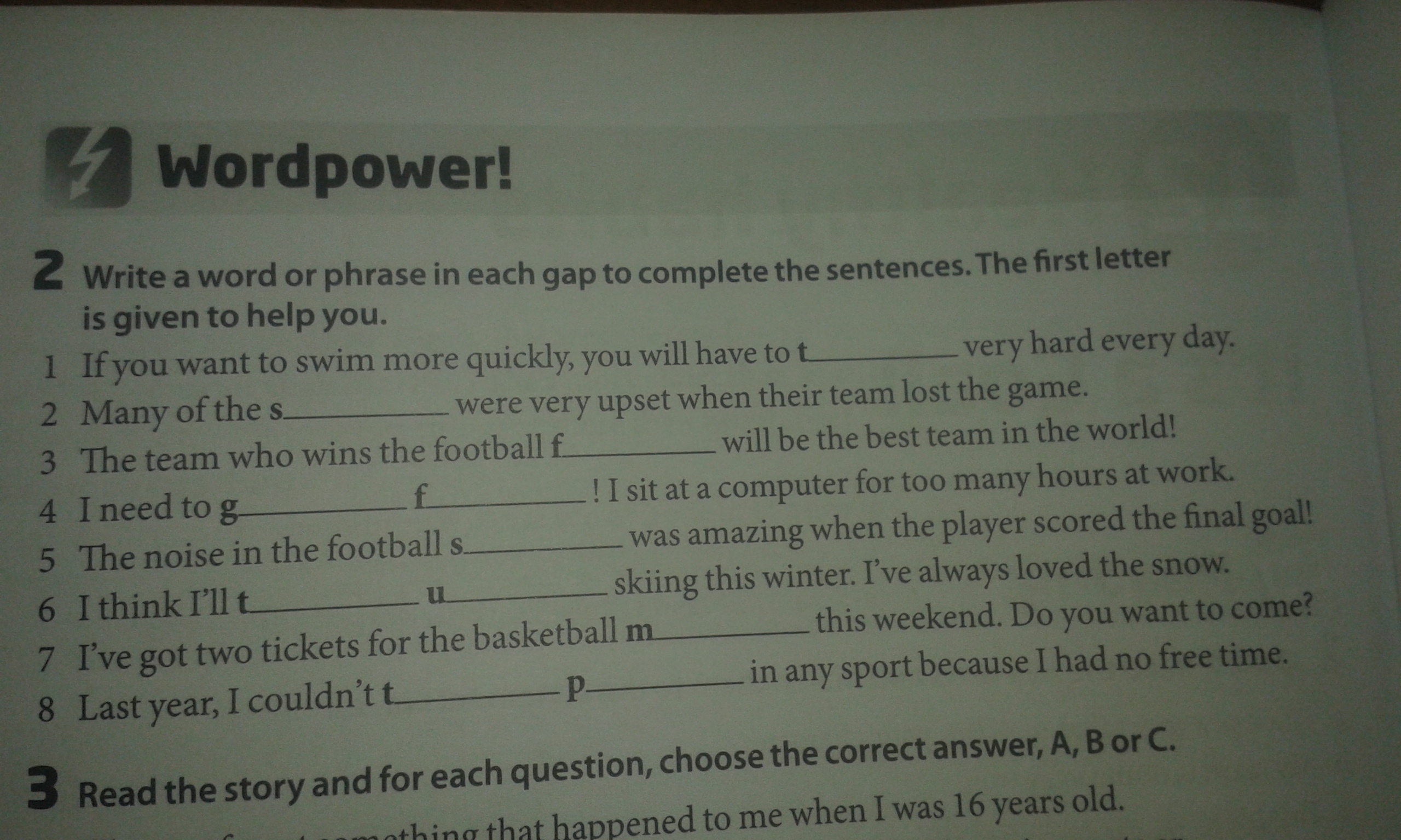 8 Last year, I couldn't take part in any sport because I had no free time.