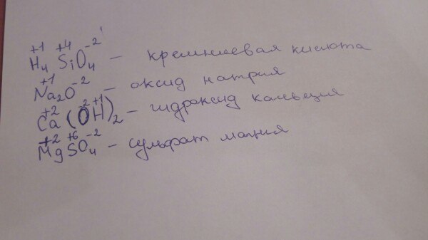 Запишите формулы веществ: кремниевой кислоты, нитрата железа(3), оксида натрия, гидроксида кальция, сульфата магния. Укажите степени окисления элементов в этих соединениях.
