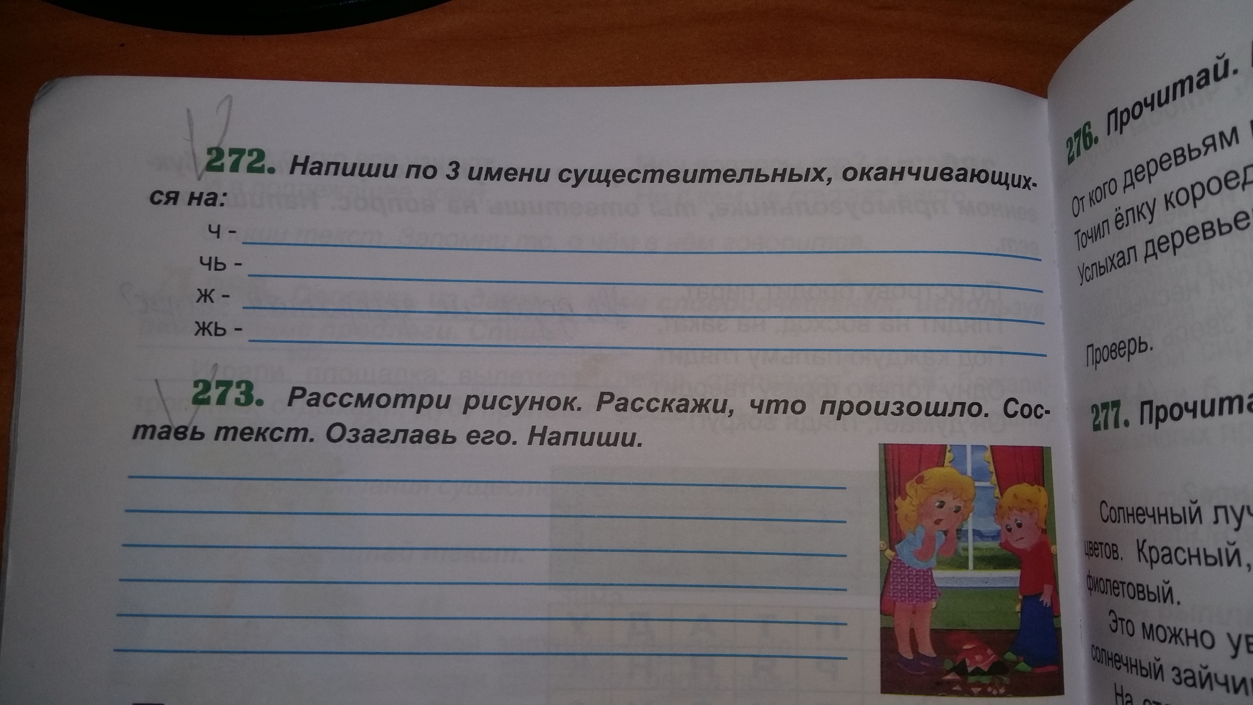 Сестра тоже взяла ,,Копье" и побежала за братом. Потом кошка вернулась к их ,,шалашу" и прыгнула на стол. ,,Индейцы", недолго думая кинули в неё копье, но попали в вазу, которая упала и разбилась. Мальчик и сестра виновато стояли около вазы и прятали глаза. А кошка вертелась рядом и как будто говорила ,, Ну вот, доигрались"!