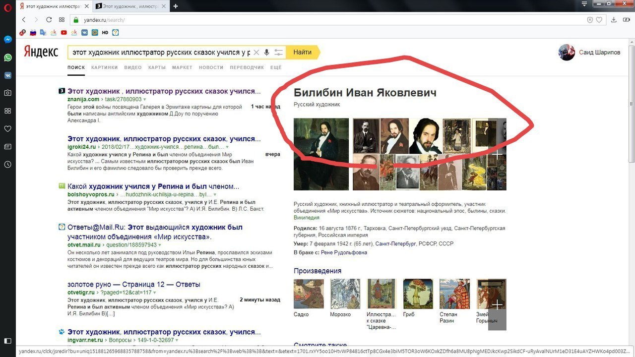 Этот художник , иллюстратор русских сказок учился у И Е Репина и был активном членом объединения
