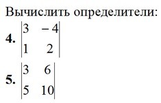 left|begin{array}{cc}3&-4\1&2end{array}right| =3cdot 2-1cdot (-4)=6+4=10\\\ left|begin{array}{cc}3&6\5&10end{array}right| =3cdot 10-5cdot 6=30-30=0