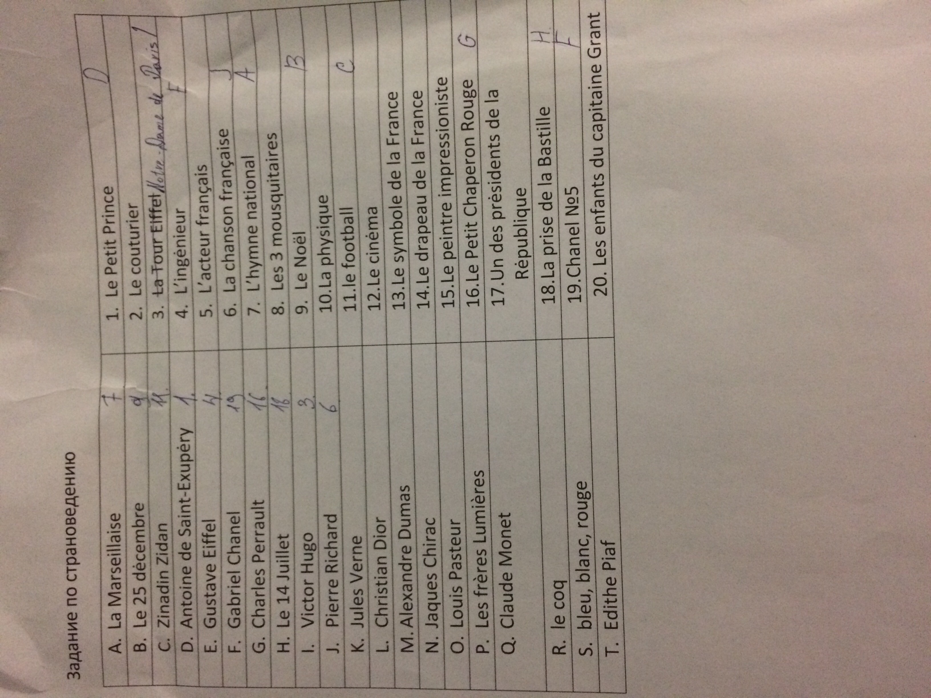 Помогите, нужно совместить словосочетания (Французский) Пример: Antoine de Saint-Exupery. Le Petit Prinse.
