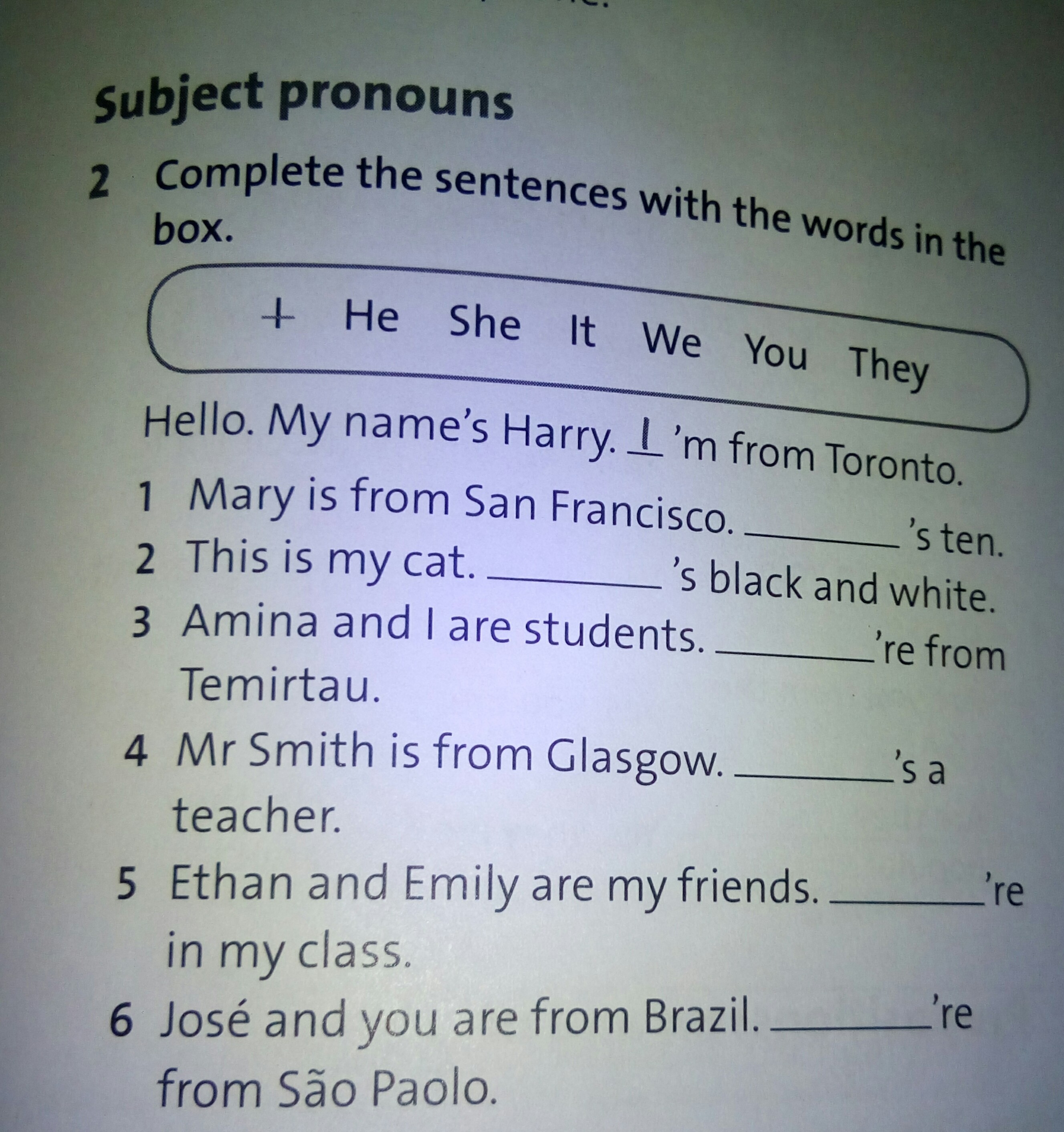 1 - she, 2 - it, 3 - we, 4 - he, 5 - they, 6 - you