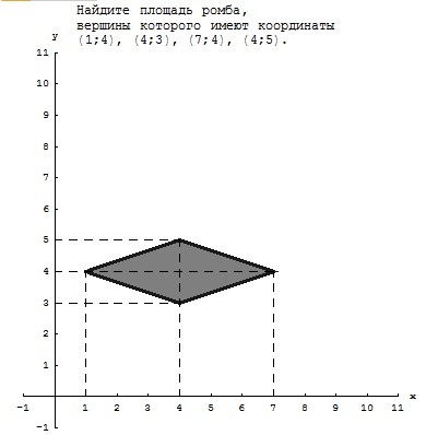 площадь ромба = (1/2)*(7-1)*(5-3)=6