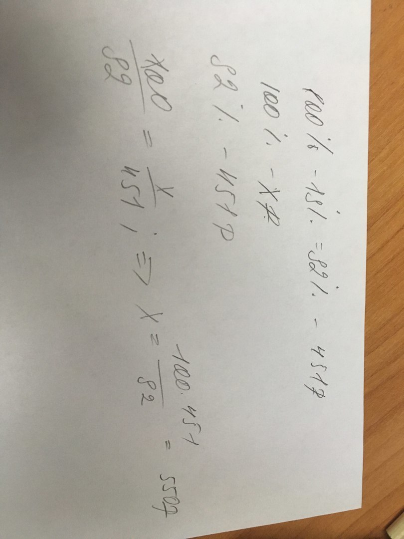 451=82%451÷82=5,55,5=1%5,5×100=550550=100% (первоначальная цена)