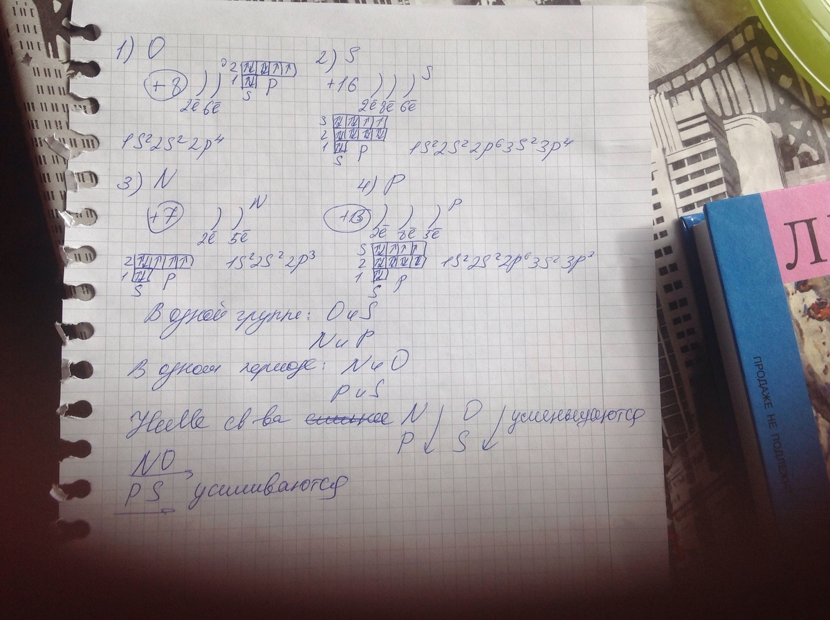электронного строения атомов кислорода , серы , азота, фосфора. Сравните их