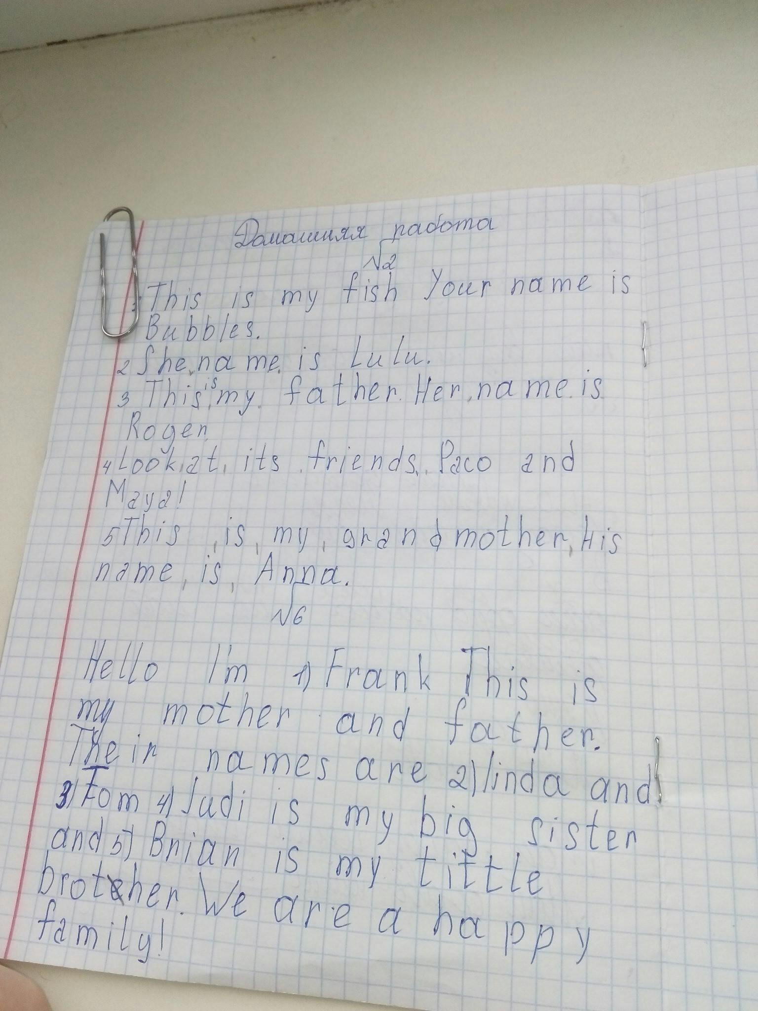 Привет я Френк.Это мои мама и папа.Их имена Линда и Том.Джуди моя старшая сестра и Браин мой младший брат.Мы счастливая семья.