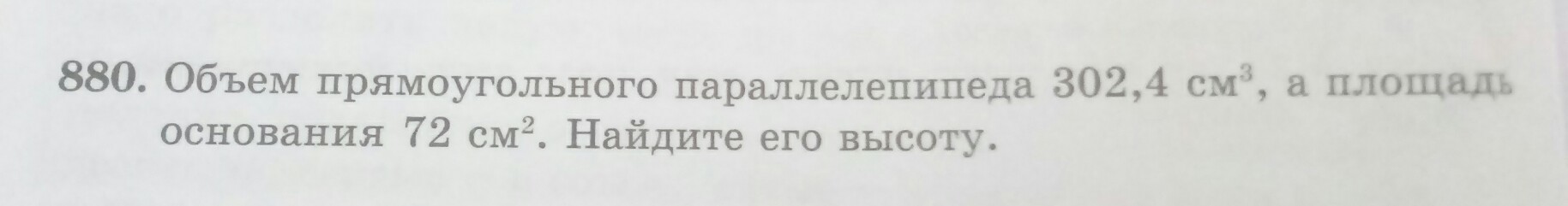 Объём прямоугольного параллелепипеда равен произведению площади основания на высоту.