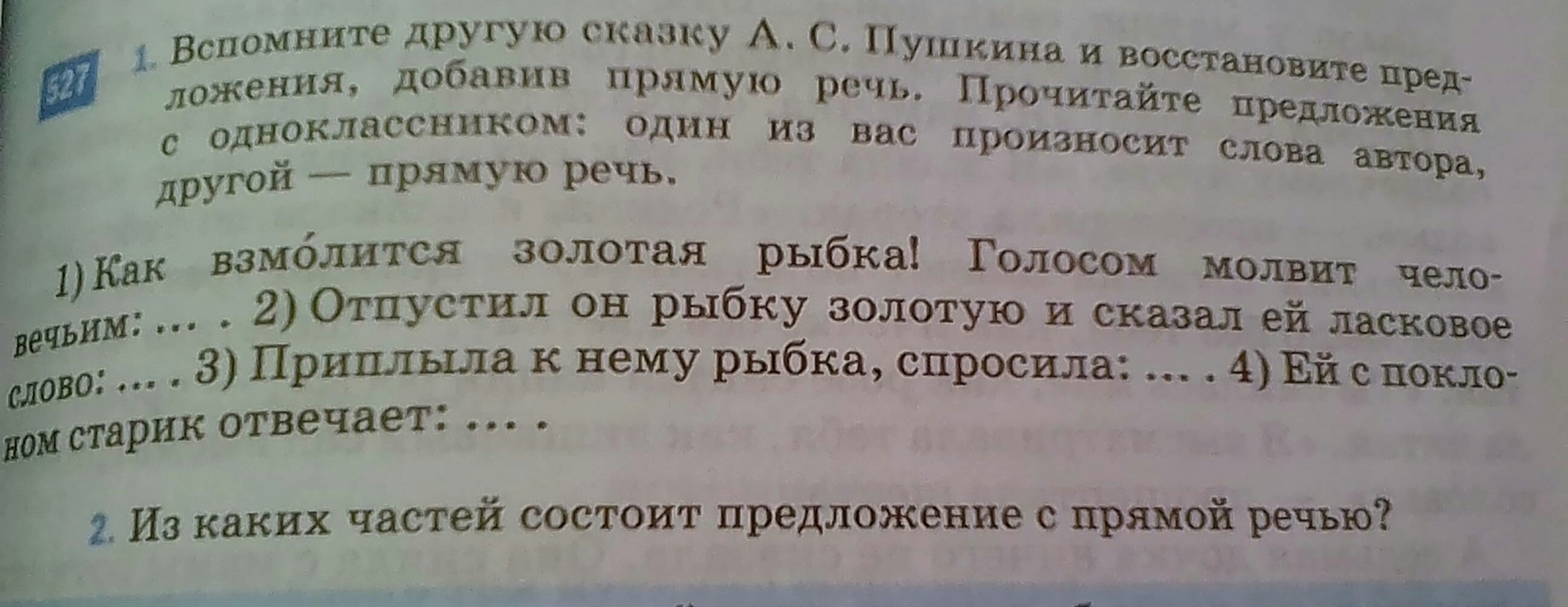 предложение : голосом молвит ,отпустил он рыбку, приплыла к нему рыбка, с поклоном.