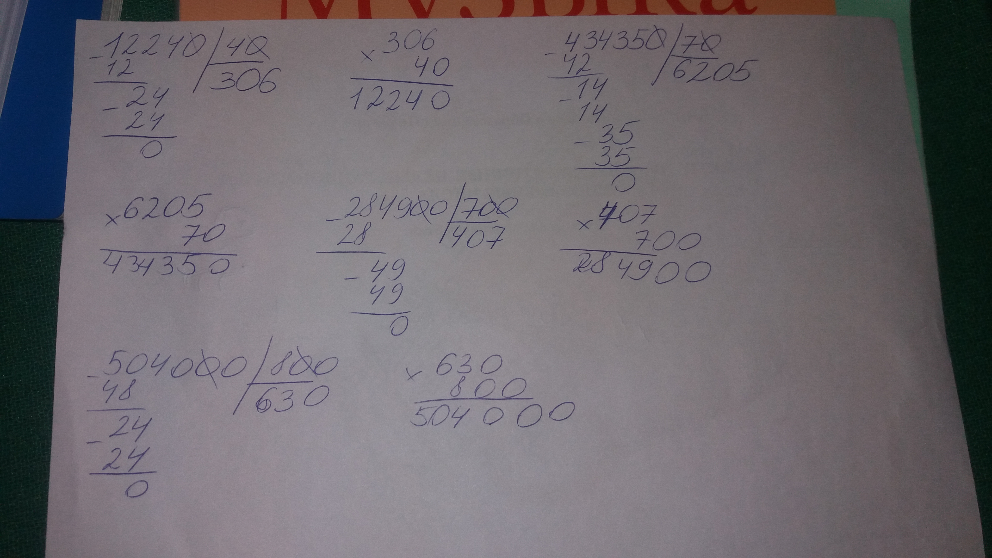 12240:40=306, 306×40=12240, 434350/70=6205, 6205×70=434350, 284900/700=407, 407×700=284900, 504000/800=630,630×800=504000