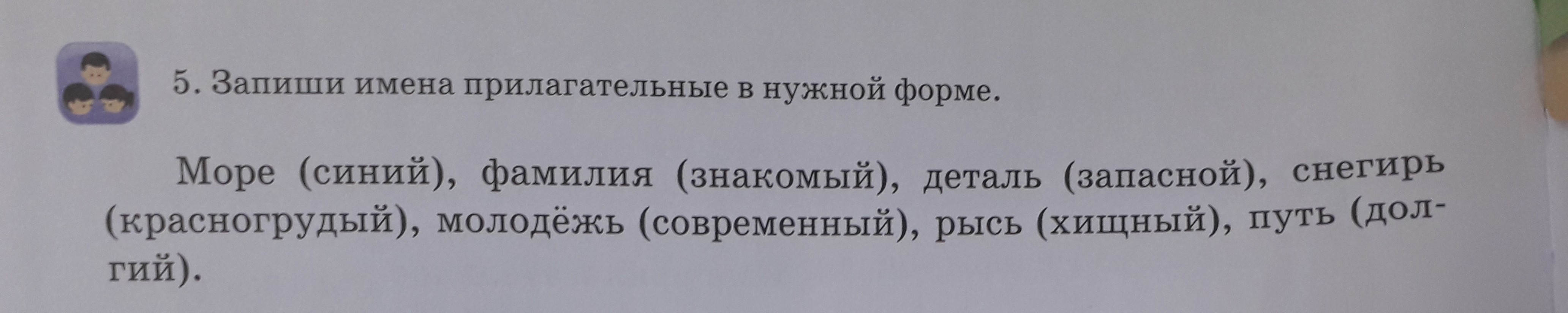 Море синее, фамилия знакомая , деталь запасная , снегирь красногрудый , молодишь современная , рысь хищная , путь долгий