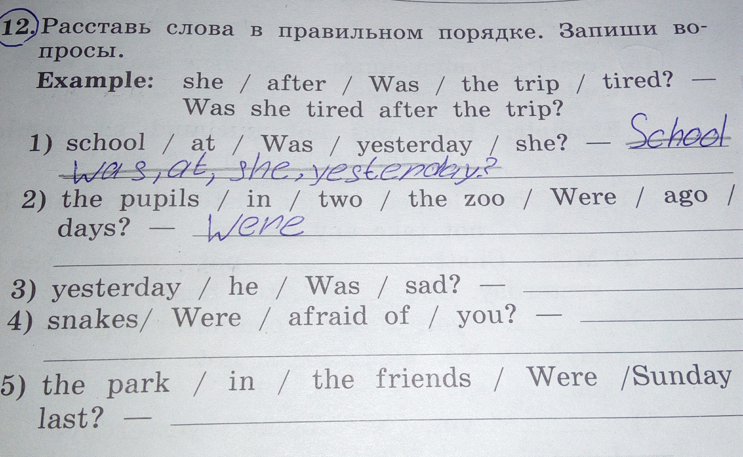 2)the pupils/in/two/the zoo/Were/ago/deys?