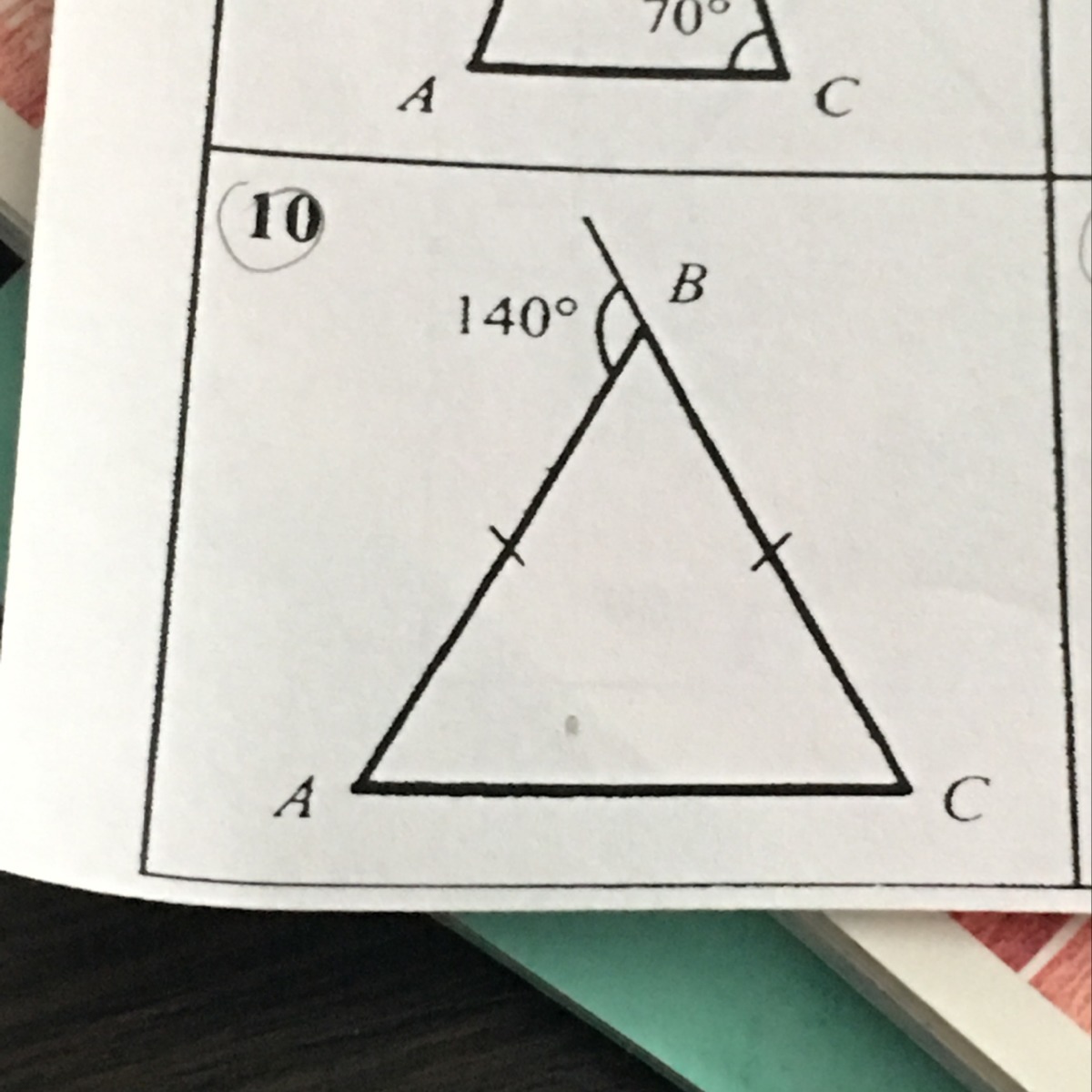 угол А=углу С=(180-40):2=70, т.к. треугольник равнобедренный