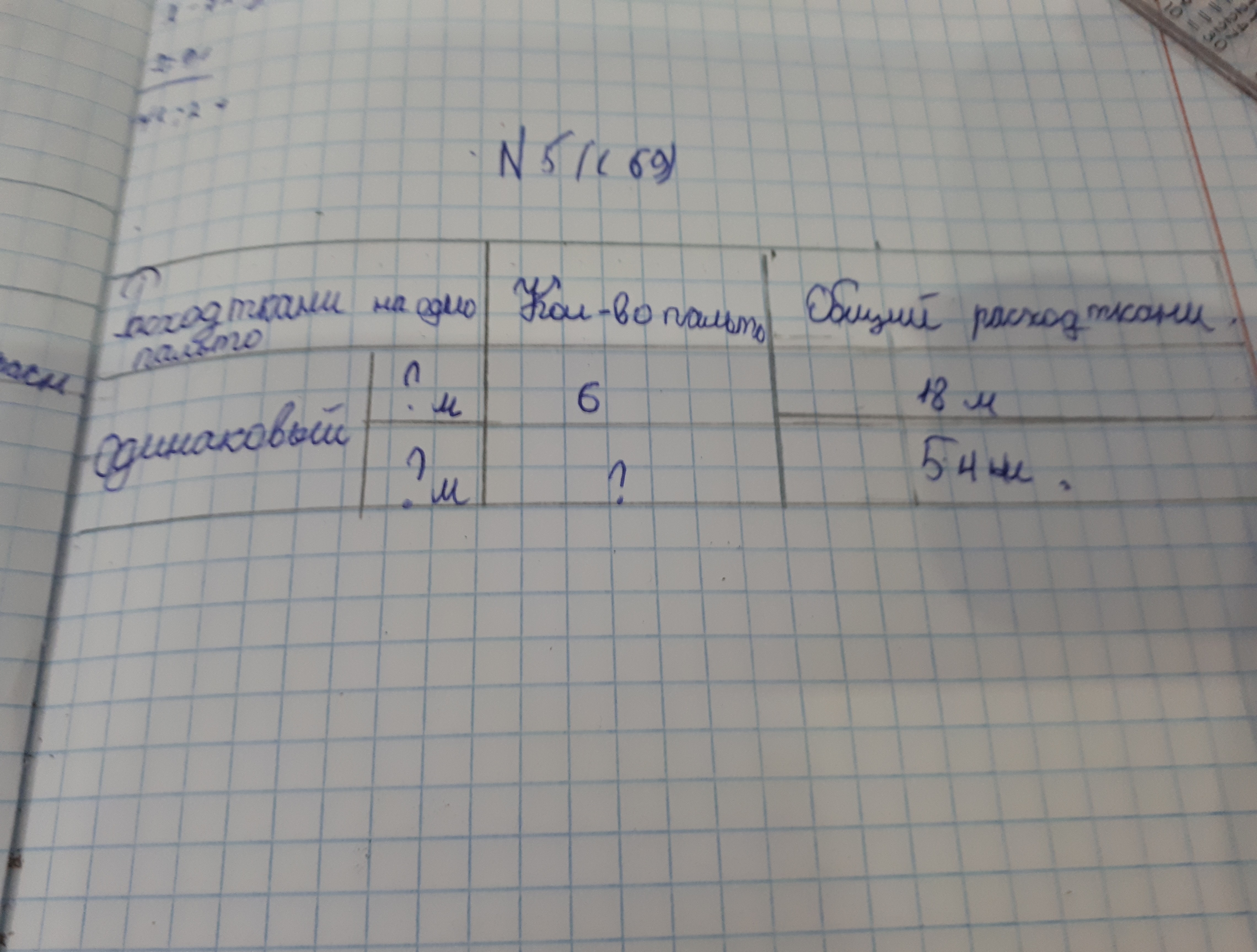 18 : 6 = 3(м) ---- расход ткани на одно пальто.