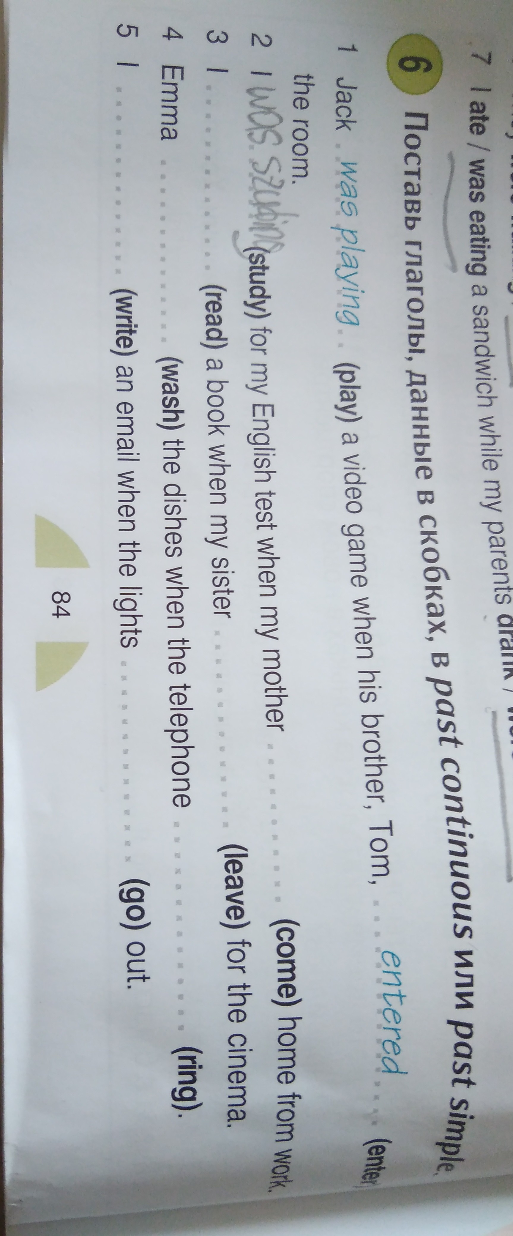 4. was washing; rang