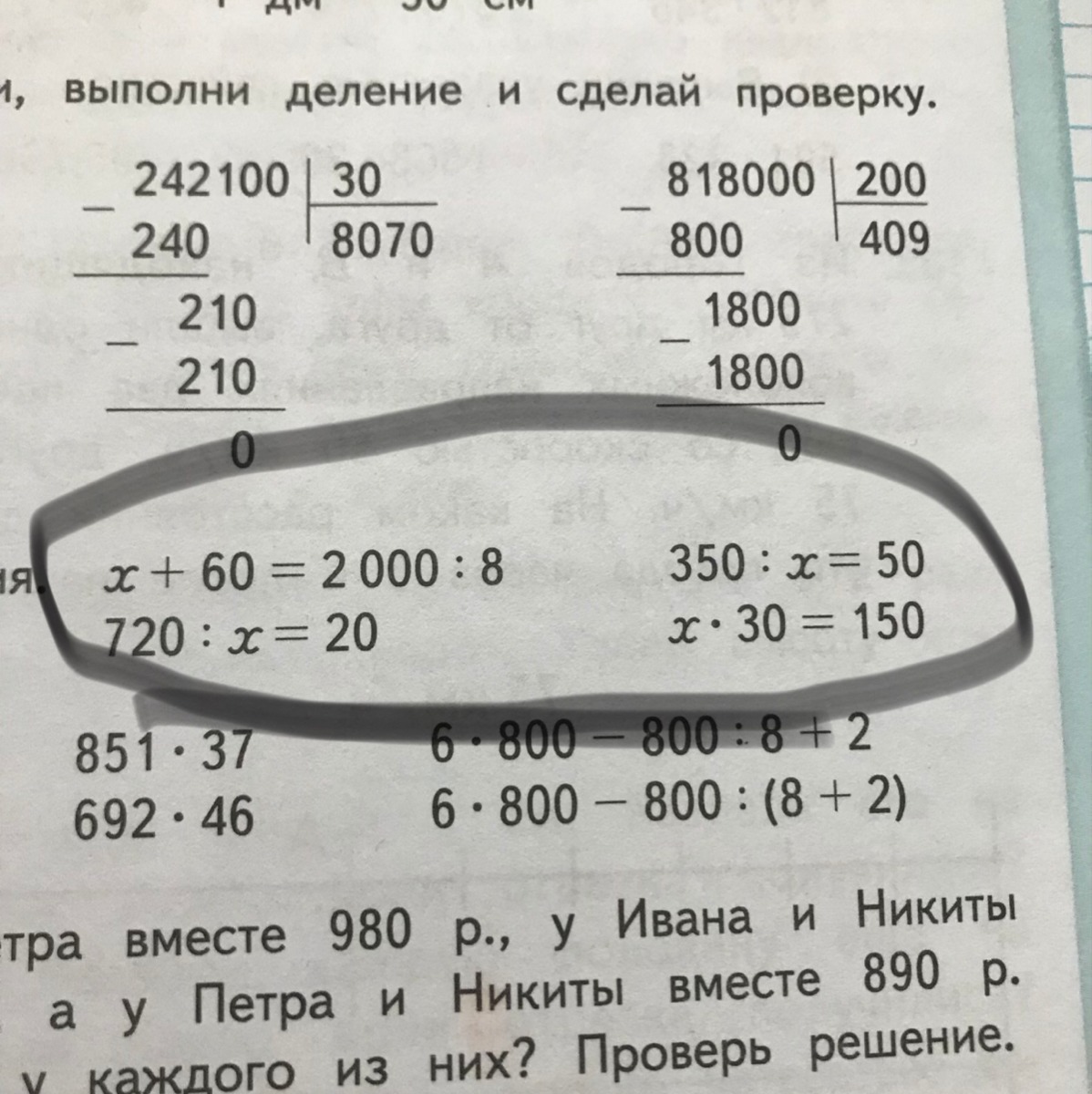 3)350:x=50