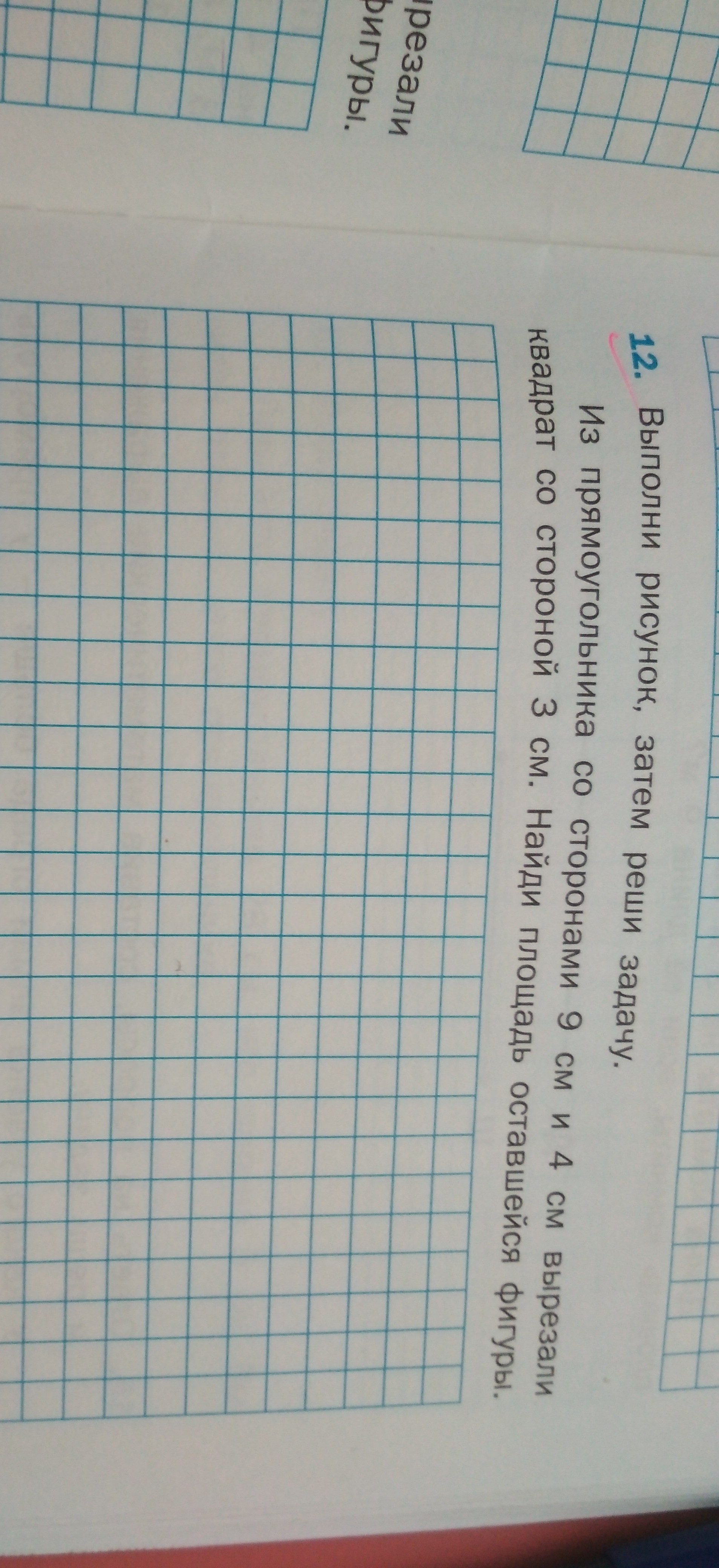 S=9×4=36 см в кв; S=3×3=9 см в кв; 36-9=27 см