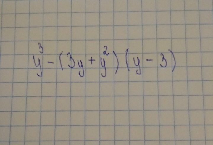 y³ - (3y + y²)(y - 3) = y³- y(y + 3)(y - 3) = y³ - y(y² - 9) = y³ - y³ + 9y = 9y