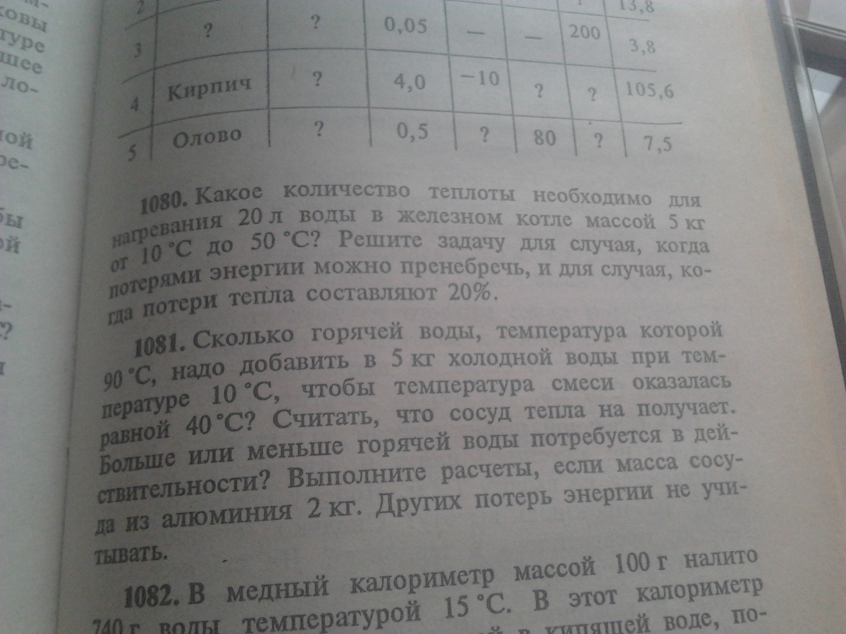 Сколько горячей воды, температура которой 90°С, надо добавить в 5 кг холодной воды при температуре 10°С, чтобы t° смеси оказалась равной 40°С? (номер 1081)