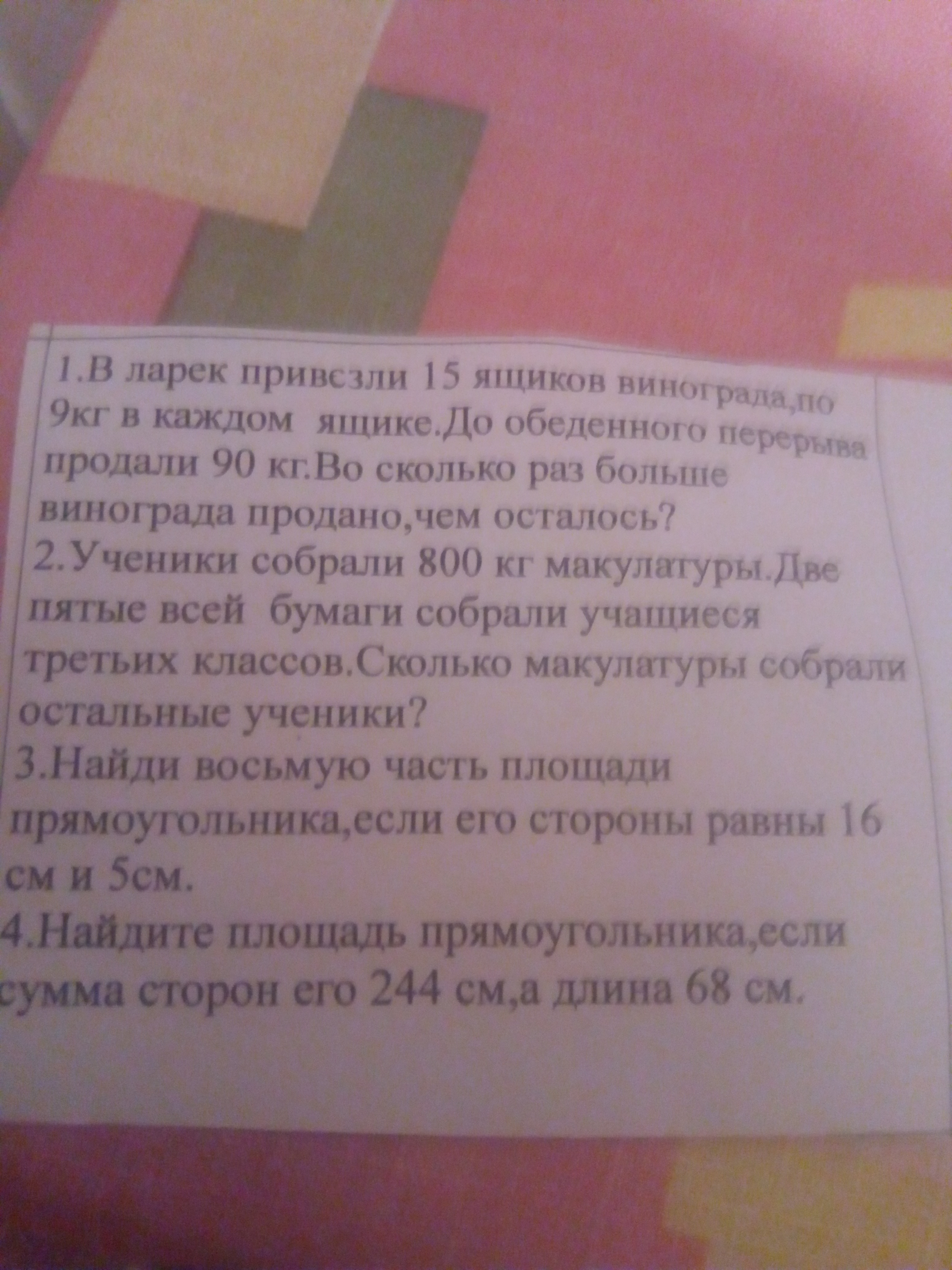 3)90:45=2раза; в 2 раза больше винограда продано, чем осталось.
